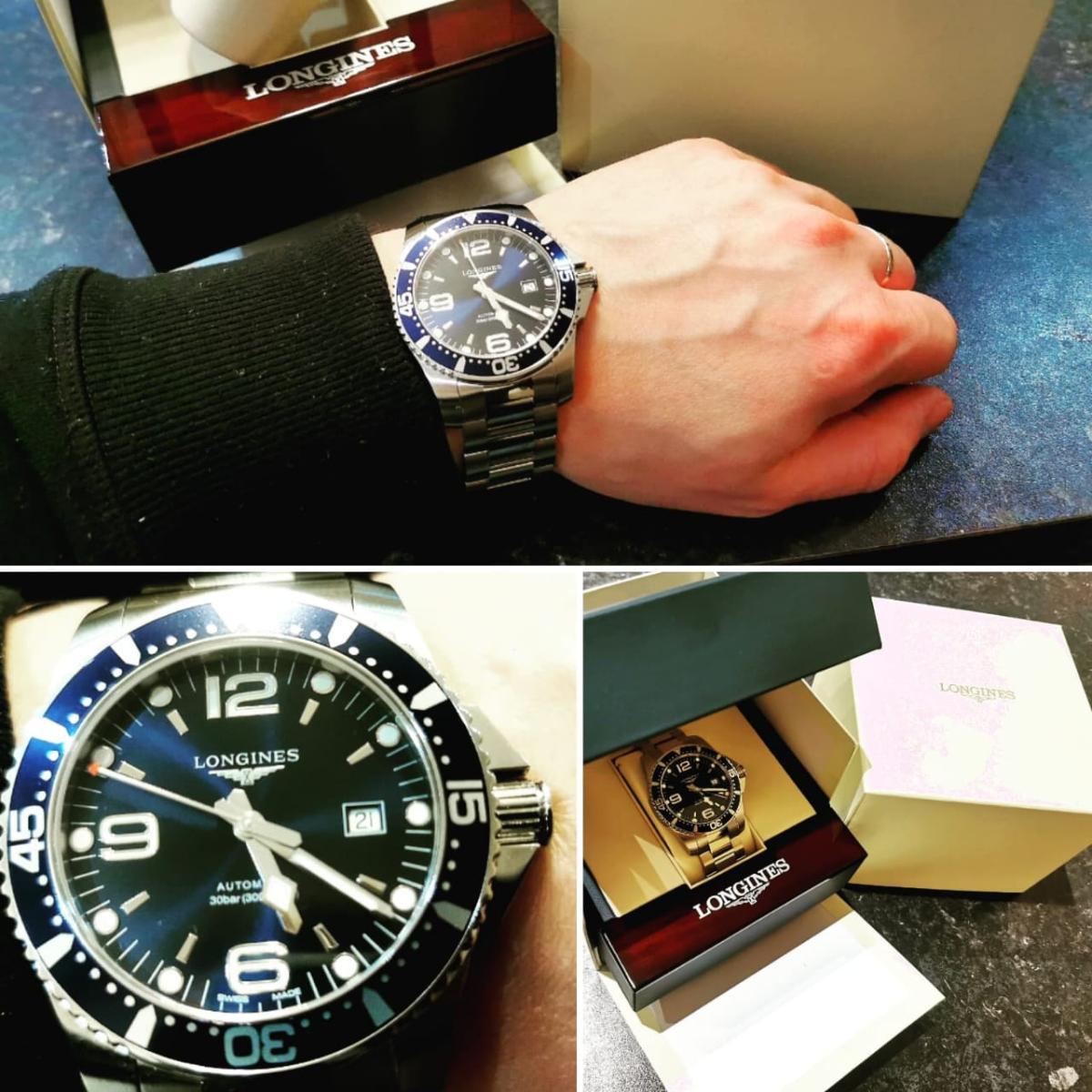 Часы просто отличные. Долго выбирал себе на каждый день. У Longines большое количество вариаций одной модели - можно выбрать цвет циферблата, материал ремешка/браслета. Диаметр корпуса для меня оптимален, на руке сидят очень хорошо. Точность хода тоже хорошая. Водостойкие.