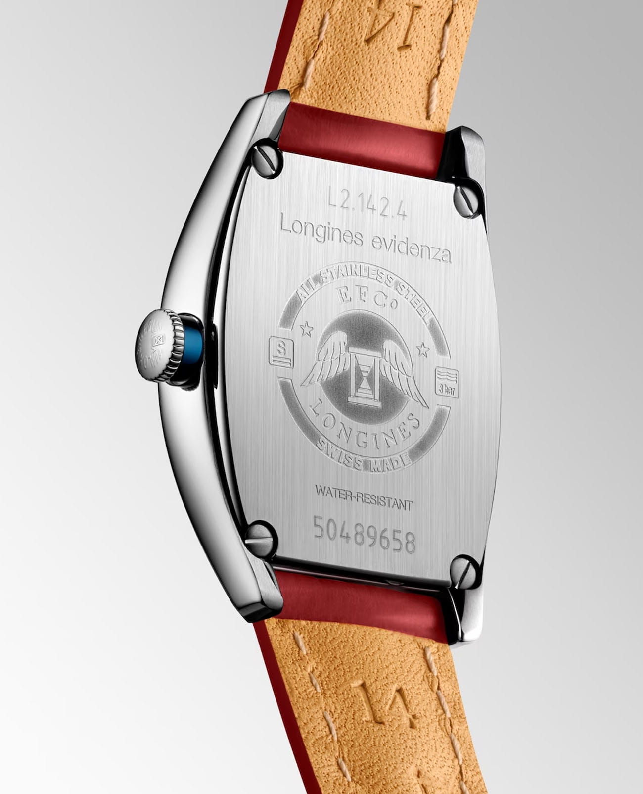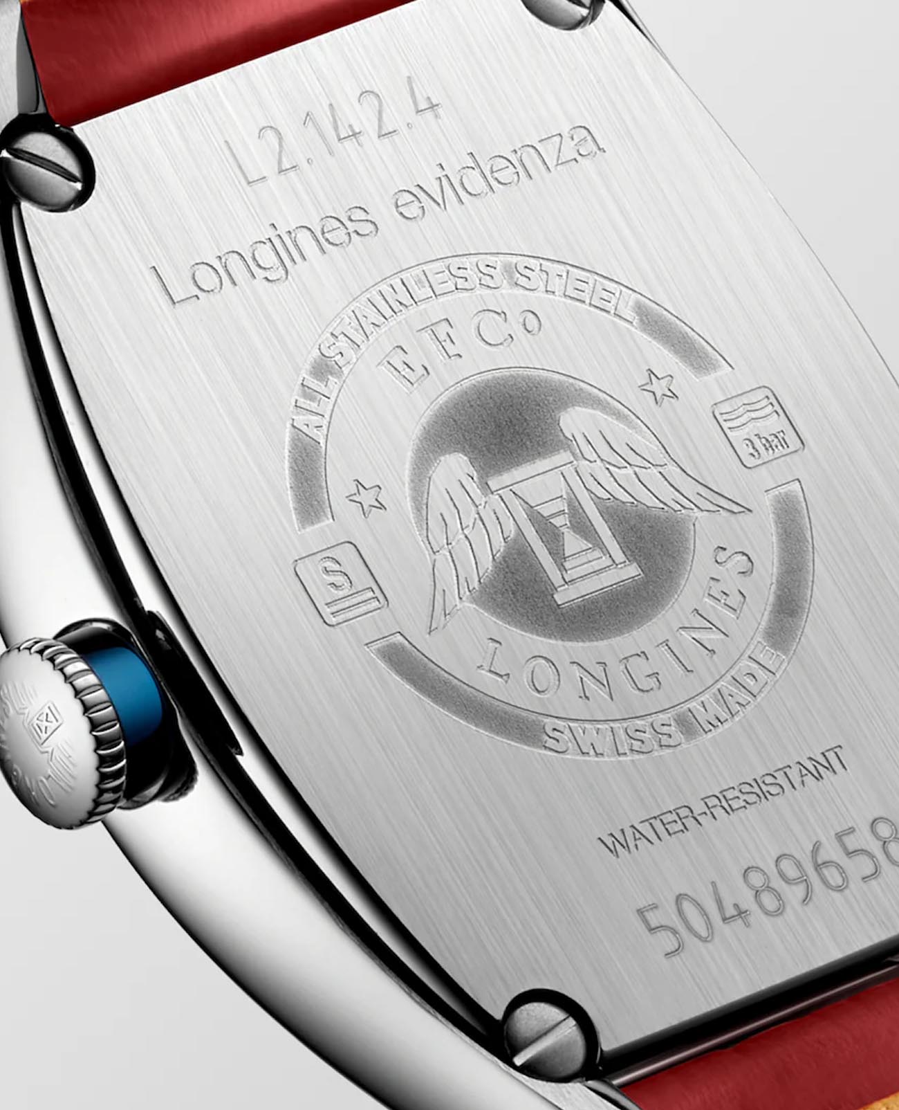 Женские швейцарские механические часы с автоподзаводом Longines Evidenza L2.142.4.09.2. Сапфировое стеклоСапфировое стеклоПрочный и надёжный материал из кристалла сапфира синтетического происхождения, характеризующийся особой твёрдостью и устойчивостью к царапинам и повреждениям. устойчивое к появлению царапин, обладающее высокой прозрачностью. Корпус часов изготовлен из нержавеющей стали. Нарисованные римские цифры. Окошко даты в положении 6 часов. Класс водозащиты: 30 метров, позволит защитить корпус от случайных брызг или капель дождя. Ремешок из кожи аллигатора на раскладной застёжкеРаскладная застёжкаТакой тип застёжки используется только на браслетах из металла. Она никогда не раскрывается полностью, происходит разделение на 2 и более частей. Раскладывающая застёжка снизит вероятность потери часов к минимуму..
