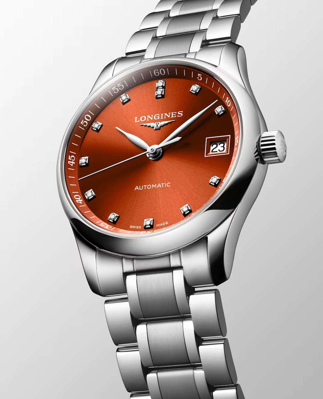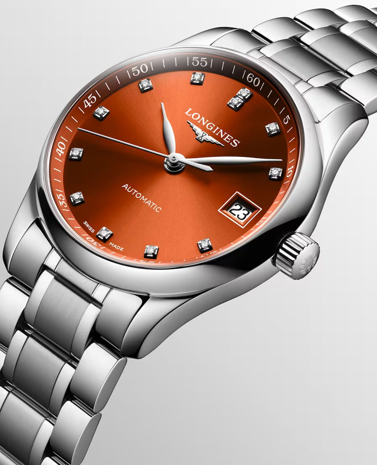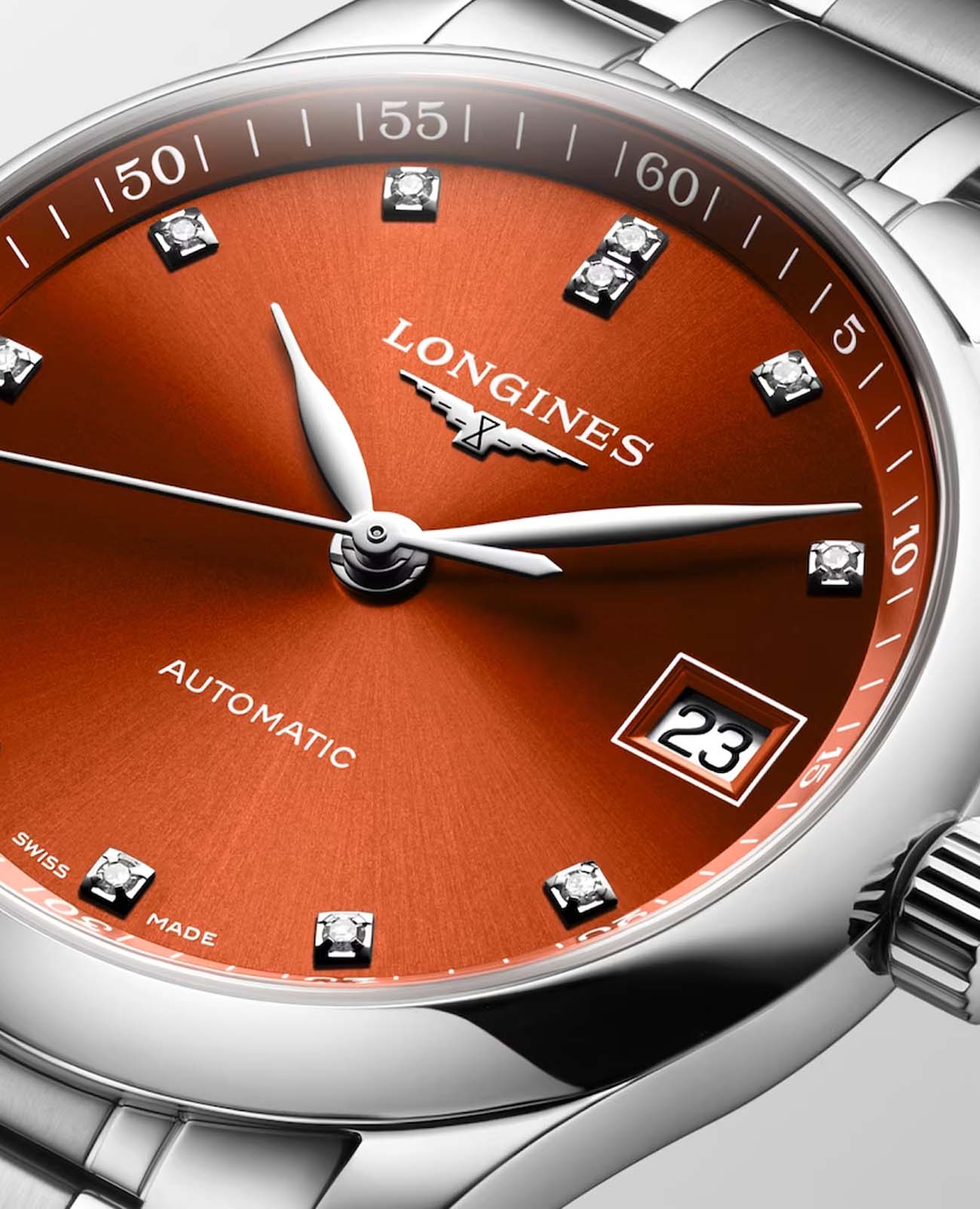 Женские швейцарские механические часы с автоподзаводом Longines Master Collection L2.357.4.08.6. Сапфировое стеклоСапфировое стеклоПрочный и надёжный материал из кристалла сапфира синтетического происхождения, характеризующийся особой твёрдостью и устойчивостью к царапинам и повреждениям. устойчивое к появлению царапин, обладающее высокой прозрачностью. Корпус часов изготовлен из нержавеющей стали. Циферблат с 12 бриллиантами группы Top Wesselton VS-SI общим весом 0.055 карата. Окошко даты в положении 3 часов. Прозрачная задняя крышка. Класс водозащиты: 30 метров, позволит защитить корпус от случайных брызг или капель дождя. Стальной браслет на застёжке «бабочка» с кнопкамиЗастёжка "бабочка"Такой вид застёжки дополняется предохранителями, помогающими избежать случайного раскрытия браслета. Обладают изящным исполнением. .