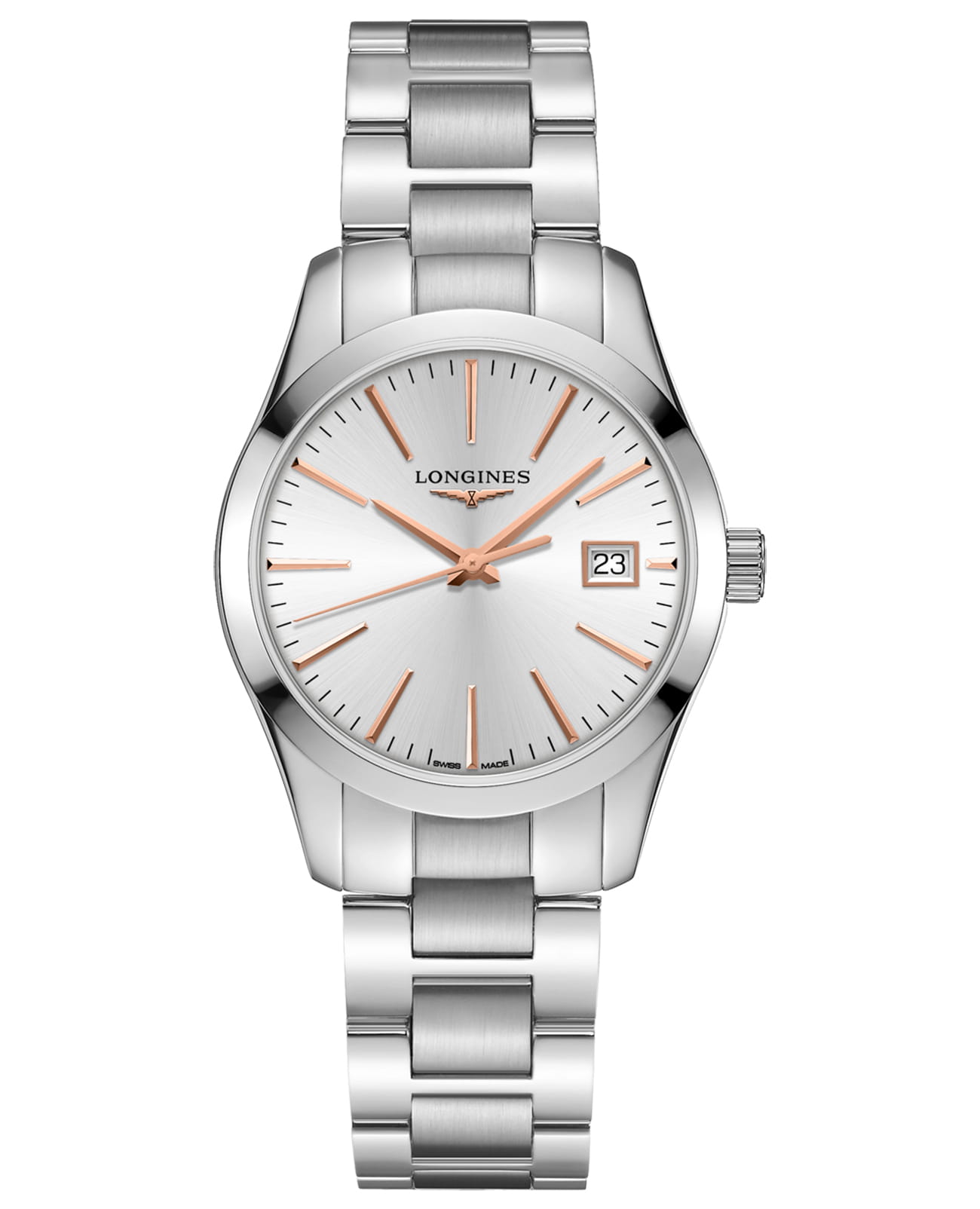 Женские швейцарские часы Longines Conquest Classic L2.386.4.72.6 помогут дополнить деловой образ.