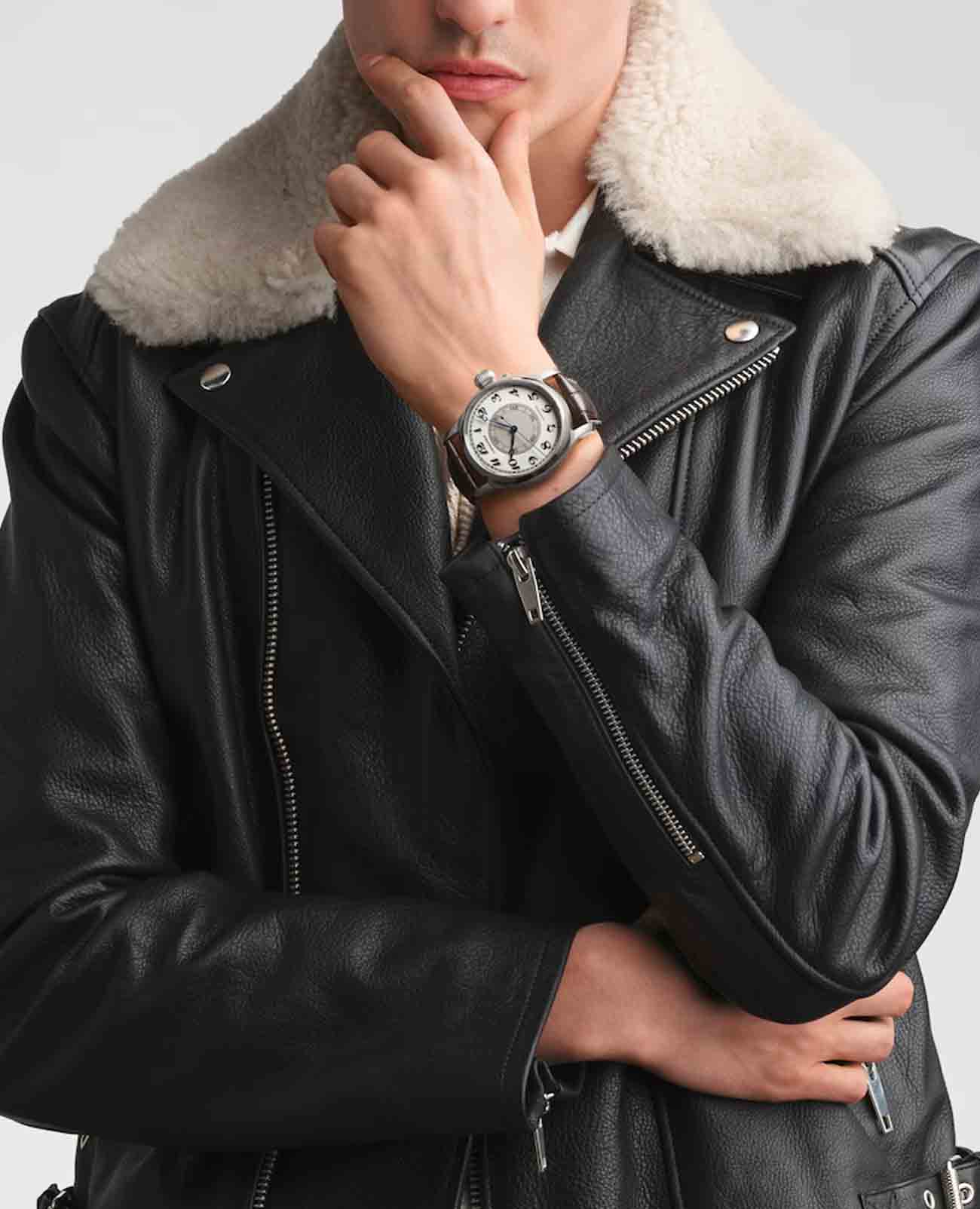 Белый лаковый циферблат, украшенный изящным внутренним посеребренным диском, придает часам утонченность и элегантность. Этот классический дизайн, словно тонкая вышивка на полотне времени, подчеркивает силу, уверенность и изысканный вкус их обладателя.
