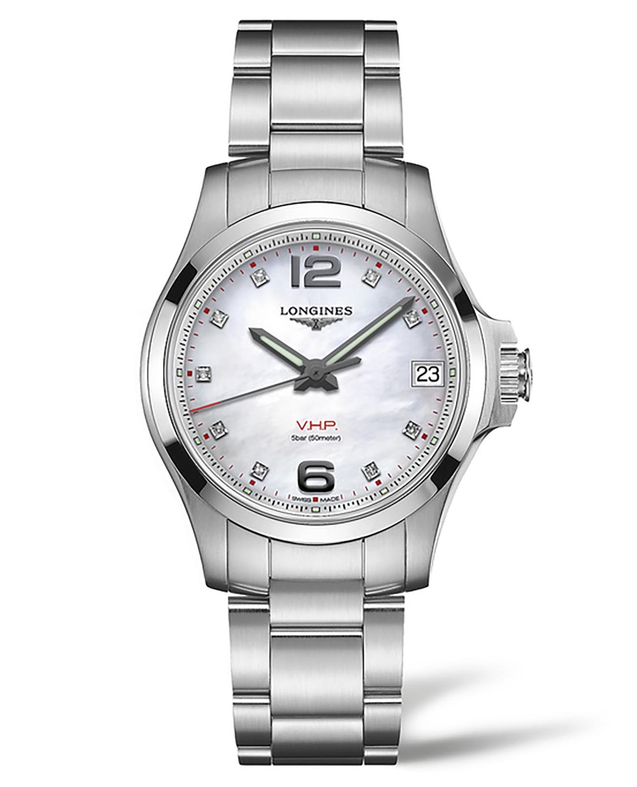 Женские швейцарские часы Longines Conquest V.H.P. L3.316.4.87.6 помогут создать респектабельный образ.