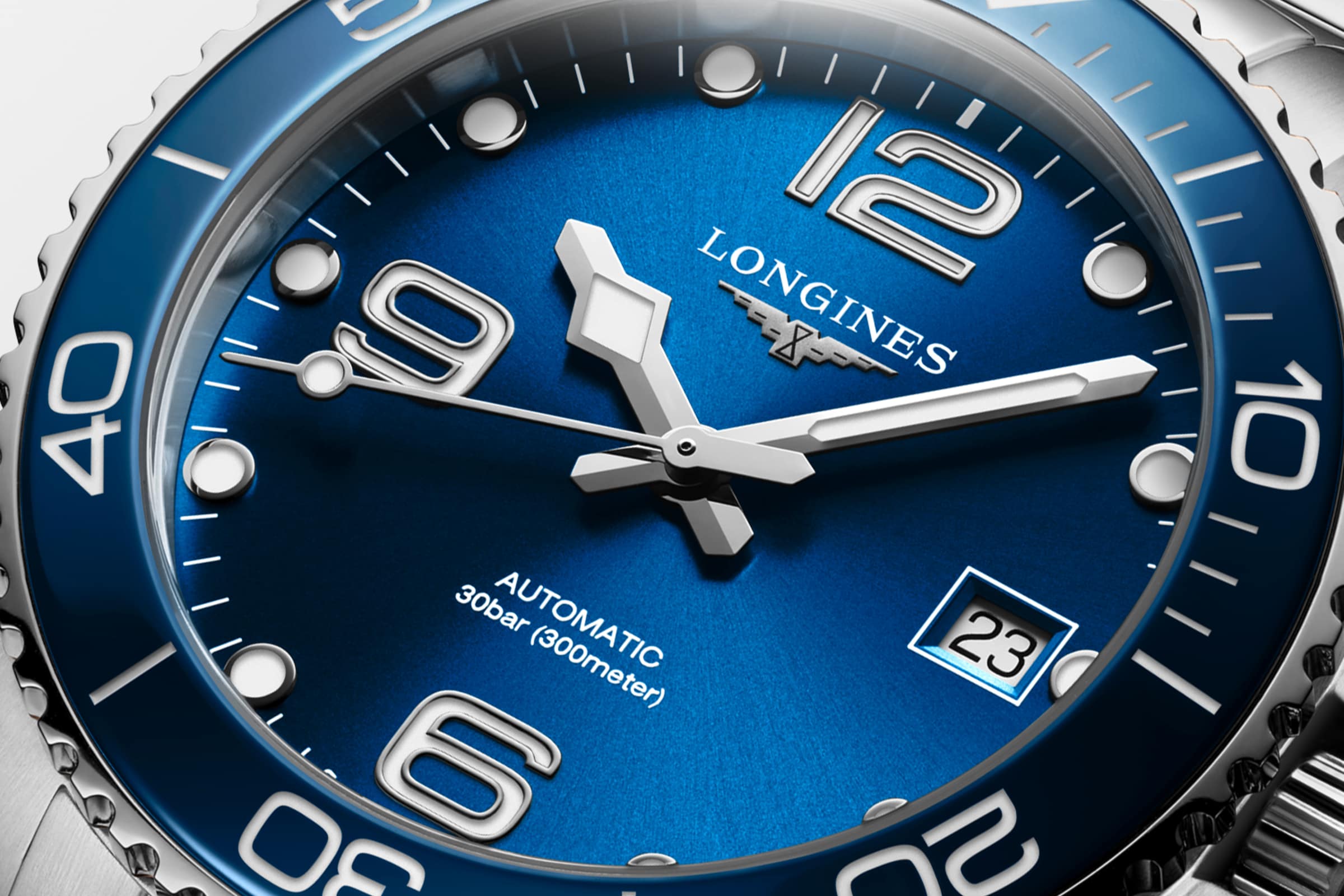 Женские швейцарские механические часы для дайвинга Longines HydroConquest L3.780.4.96.6. Сапфировое стеклоСапфировое стеклоПрочный и надёжный материал из кристалла сапфира синтетического происхождения, характеризующийся особой твёрдостью и устойчивостью к царапинам и повреждениям. с многослойным антибликовым покрытием с обеих сторон, устойчивое к появлению царапин, обладающее высокой прозрачностью. Вращающийся безельБезельВнешний ободок, закрепляющий стекло. В спортивных часах так называется поворотное кольцо с делениями на циферблате, выполняет роль таймера – замеряет отрезки времени на шкале. Неподвижный безель – элемент декора. Однонаправленно вращающийся безель на дайверских часах позволяет фиксировать моменты погружения и выныривания на поверхность. из керамики, защищенный от царапин, никогда не изнашивается и не выцветает. Стрелки и метки с люминесцентным покрытиемЛюминесцентное покрытиеПозволяет считывать показания времени в темноте. Производители наносят на стрелки, часовые индексы, безель или поверхность циферблата светонакопительный состав, дающий холодное свечение.. Окошко даты находится в положении 3 часа. Корпус из нержавеющая стали и керамики. Класс водозащиты: 300 метров, позволит плавать, нырять и заниматься другими водными видами спорта. Стальной браслет на раскладной застёжкеРаскладная застёжкаТакой тип застёжки используется только на браслетах из металла. Она никогда не раскрывается полностью, происходит разделение на 2 и более частей. Раскладывающая застёжка снизит вероятность потери часов к минимуму. с удлинением для дайверовУдлинение для дайверовЗастёжка с удлинением для дайверов представляет собой безопасное крепление, которое позволяет надевать часы поверх гидрокостюма. Гибкая застёжка удлиняется на 1-2 миллиметра..