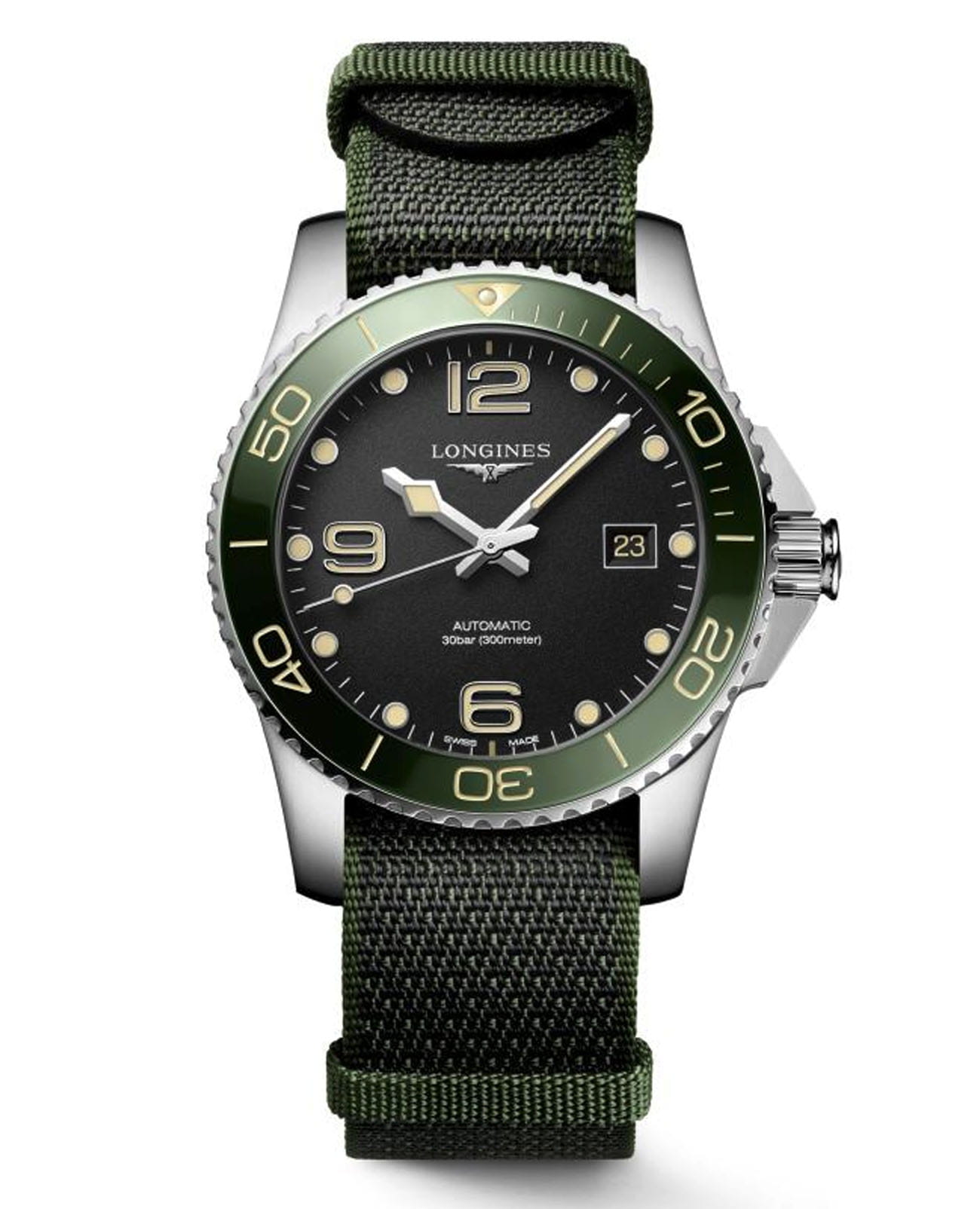 Швейцарские механические часы унисекс для дайвинга Longines HydroConquest L3.781.4.05.2. Сапфировое стеклоСапфировое стеклоПрочный и надёжный материал из кристалла сапфира синтетического происхождения, характеризующийся особой твёрдостью и устойчивостью к царапинам и повреждениям. с многослойным антибликовым покрытием с обеих сторон, устойчивое к появлению царапин, обладающее высокой прозрачностью. Корпус часов изготовлен из стали. Вращающийся безельБезельВнешний ободок, закрепляющий стекло. В спортивных часах так называется поворотное кольцо с делениями на циферблате, выполняет роль таймера – замеряет отрезки времени на шкале. Неподвижный безель – элемент декора. Однонаправленно вращающийся безель на дайверских часах позволяет фиксировать моменты погружения и выныривания на поверхность. из стали и керамики, защищенный от царапин, никогда не изнашивается и не выцветает. Стрелки и метки с люминесцентным покрытиемЛюминесцентное покрытиеПозволяет считывать показания времени в темноте. Производители наносят на стрелки, часовые индексы, безель или поверхность циферблата светонакопительный состав, дающий холодное свечение.. Окошко даты находится в положении 3 часов. Класс водозащиты: 300 метров, позволит плавать, нырять и заниматься другими водными видами спорта. Синтетический ремешок на стандартной застежке.