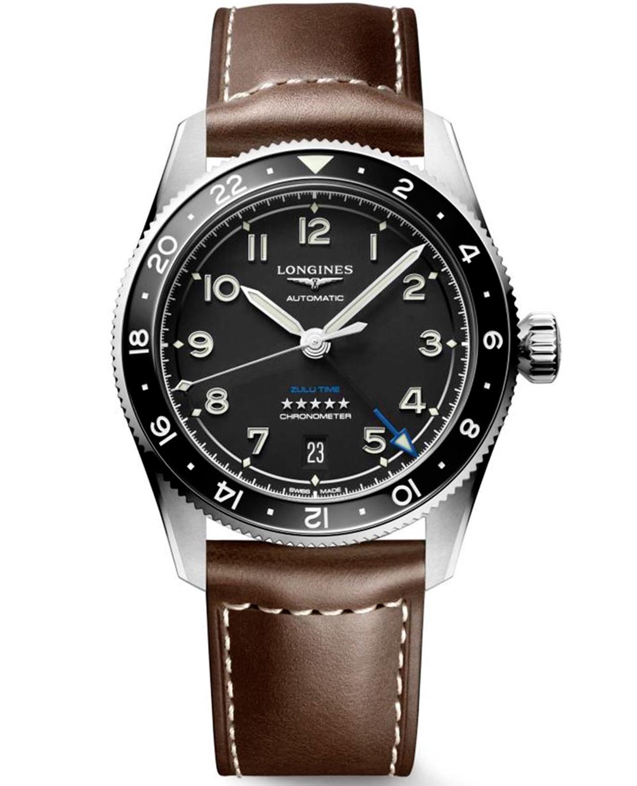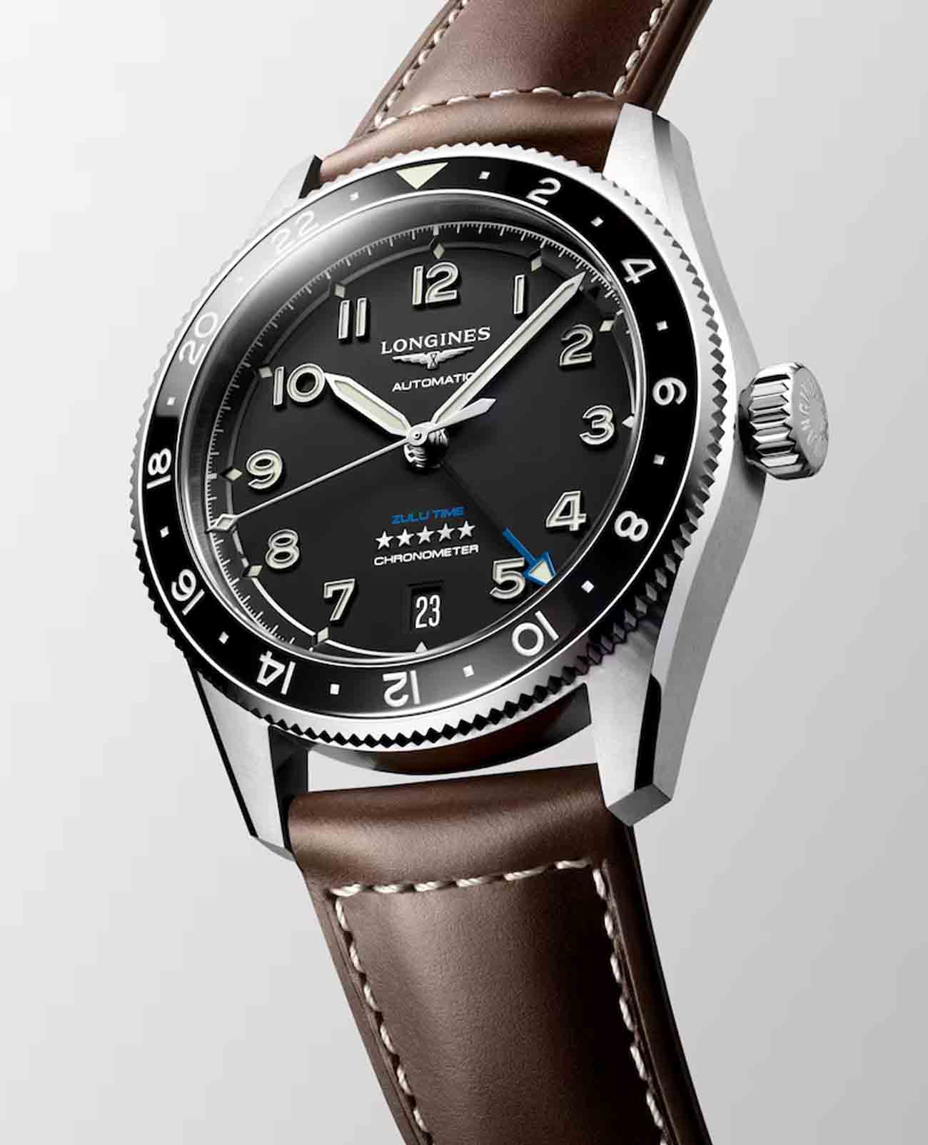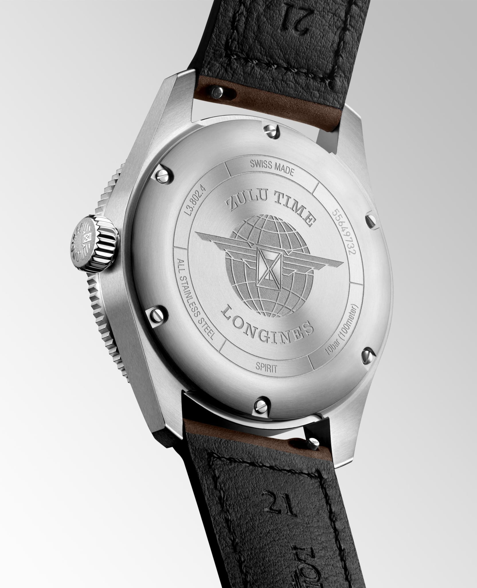 Мужские швейцарские механические часы Longines Spirit L3.802.4.53.2. Сапфировое стеклоСапфировое стеклоПрочный и надёжный материал из кристалла сапфира синтетического происхождения, характеризующийся особой твёрдостью и устойчивостью к царапинам и повреждениям. с многослойным антибликовым покрытием с обеих сторон, устойчивое к появлению царапин, обладающее высокой прозрачностью. Корпус часов изготовлен из стали. Вращающийся безельБезельВнешний ободок, закрепляющий стекло. В спортивных часах так называется поворотное кольцо с делениями на циферблате, выполняет роль таймера – замеряет отрезки времени на шкале. Неподвижный безель – элемент декора. Однонаправленно вращающийся безель на дайверских часах позволяет фиксировать моменты погружения и выныривания на поверхность. из стали и керамики, защищенный от царапин, никогда не изнашивается и не выцветает. Стрелки и метки с люминесцентным покрытиемЛюминесцентное покрытиеПозволяет считывать показания времени в темноте. Производители наносят на стрелки, часовые индексы, безель или поверхность циферблата светонакопительный состав, дающий холодное свечение.. Класс водозащиты: 100 метров, позволит плавать, нырять и заниматься другими водными видами спорт. Кожаный ремешок на стандартной застёжке.