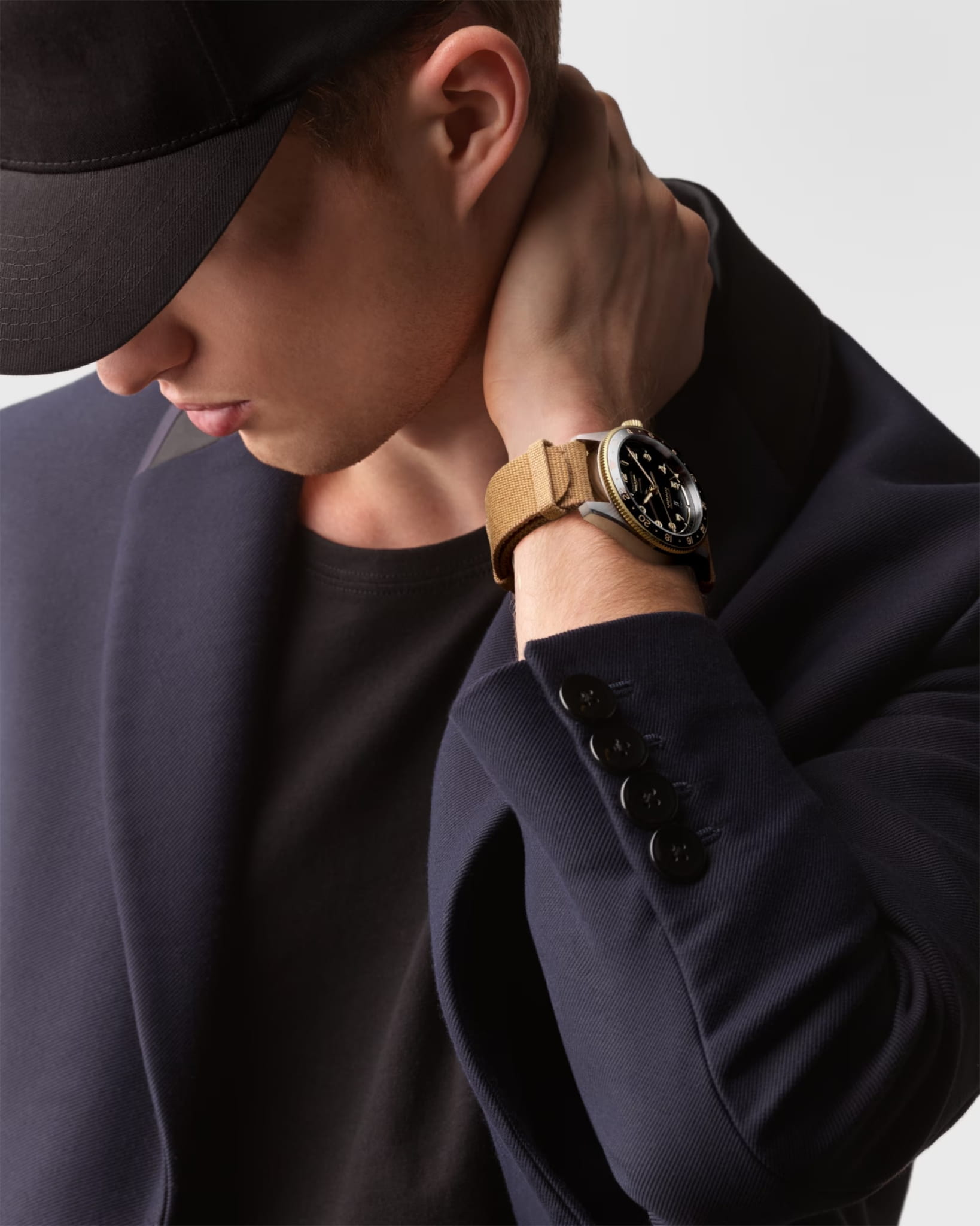 . Устойчивое к царапинам сапфировое стеклоСапфировое стеклоПрочный и надёжный материал из кристалла сапфира синтетического происхождения, характеризующийся особой твёрдостью и устойчивостью к царапинам и повреждениям. с многослойным антибликовым покрытиемАнтибликовое покрытиеСлой оксида металла в 0,13-0,3 микрон, благодаря которому стекло часов не бликует и не отражает свет. Антибликовое покрытие уменьшает отражение света в 10 раз, обеспечивая отличную читаемость показателей циферблата. с обеих сторон. Стрелки и метки с люминесцентным покрытиемЛюминесцентное покрытиеПозволяет считывать показания времени в темноте. Производители наносят на стрелки, часовые индексы, безель или поверхность циферблата светонакопительный состав, дающий холодное свечение.. Окошко даты находится в положении 6 часов. Класс водозащиты: 100 метров, позволит плавать, нырять и заниматься другими водными видами спорта. Тканевый ремешок на стандартной застёжке.