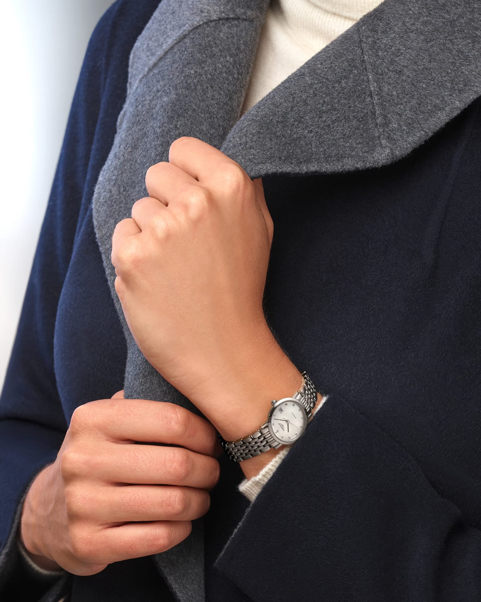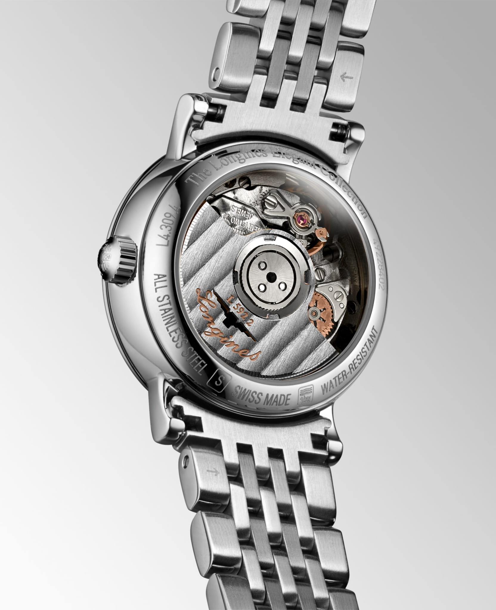 Швейцарские механические часы с автоподзаводом Longines Elegant L4.309.4.87.6. Сапфировое стеклоСапфировое стеклоПрочный и надёжный материал из кристалла сапфира синтетического происхождения, характеризующийся особой твёрдостью и устойчивостью к царапинам и повреждениям. с многослойным антибликовым покрытием с обеих сторон, устойчивое к появлению царапин, обладающее высокой прозрачностью. Корпус часов изготовлен из стали. Циферблат с 12 бриллиантами группы Top Wesselton VS-SI общим весом 0.026 карата. Окошко даты находится в положении 3 часа. Класс водозащиты: 30 метров, позволит защитить корпус от случайных брызг или капель дождя. Стальной браслет на застёжке «бабочка» с кнопкамиЗастёжка "бабочка"Такой вид застёжки дополняется предохранителями, помогающими избежать случайного раскрытия браслета. Обладают изящным исполнением. .