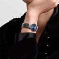 Компактный синий циферблат украшен 12 бриллиантами общим весом 0,081 карата. Элегантным дополнением стал стальной браслет оригинального плетения. Швейцарский кварцевый калибр L420 обеспечивает высокую точность хода. Сапфировое стекло не допускает появления царапин на поверхности.