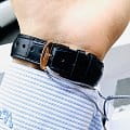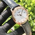 . Инкрустация бриллиантами превращает элегантные часы в изысканное украшение. Механизм с автоматическим подзаводом работает от амплитуды движения руки. Благодаря прозрачной задней крышке корпуса можно увидеть практически все детали механизма. Ремешок из кожи аллигатора с простой, подчеркивающей минимализм дизайна, золотой застежкой.