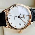 Мужские швейцарские механические часы Longines Flagship L4.774.8.27.2, механический механизм (автоматический калибр) с высокой точностью. Сапфировое стеклоСапфировое стеклоПрочный и надёжный материал из кристалла сапфира синтетического происхождения, характеризующийся особой твёрдостью и устойчивостью к царапинам и повреждениям. устойчивое к появлению царапин, обладающее высокой прозрачностью. Класс водозащиты: 30 метров, позволит защитить корпус от случайных брызг или капель дождя. Корпус часов изготовлен из 18-каратного розового золота18-каратное золотоОбозначение по каратной системе пробирования, оно показывает, сколько драгоценного металла содержится в изделии. 18 карат - в составе 75% чистого золота, соответствует 750 пробе.
