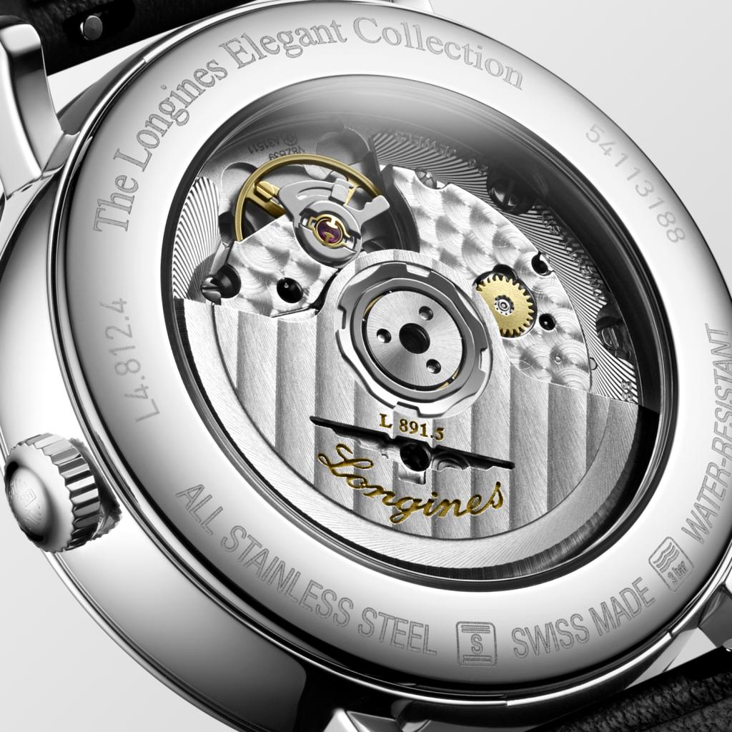 Женские швейцарские механические часы с автоподзаводом Longines Elegant Collection L4.812.4.11.0. Сапфировое стеклоСапфировое стеклоПрочный и надёжный материал из кристалла сапфира синтетического происхождения, характеризующийся особой твёрдостью и устойчивостью к царапинам и повреждениям. устойчивое к появлению царапин, обладающее высокой прозрачностью. Корпус изготовлен из нержавещей стали. Окошко даты находится в положении 3 часа. Класс водозащиты: 30 метров, позволит защитить корпус от случайных брызг или капель дождя. Кожаный ремешок на стандартной застежке.
