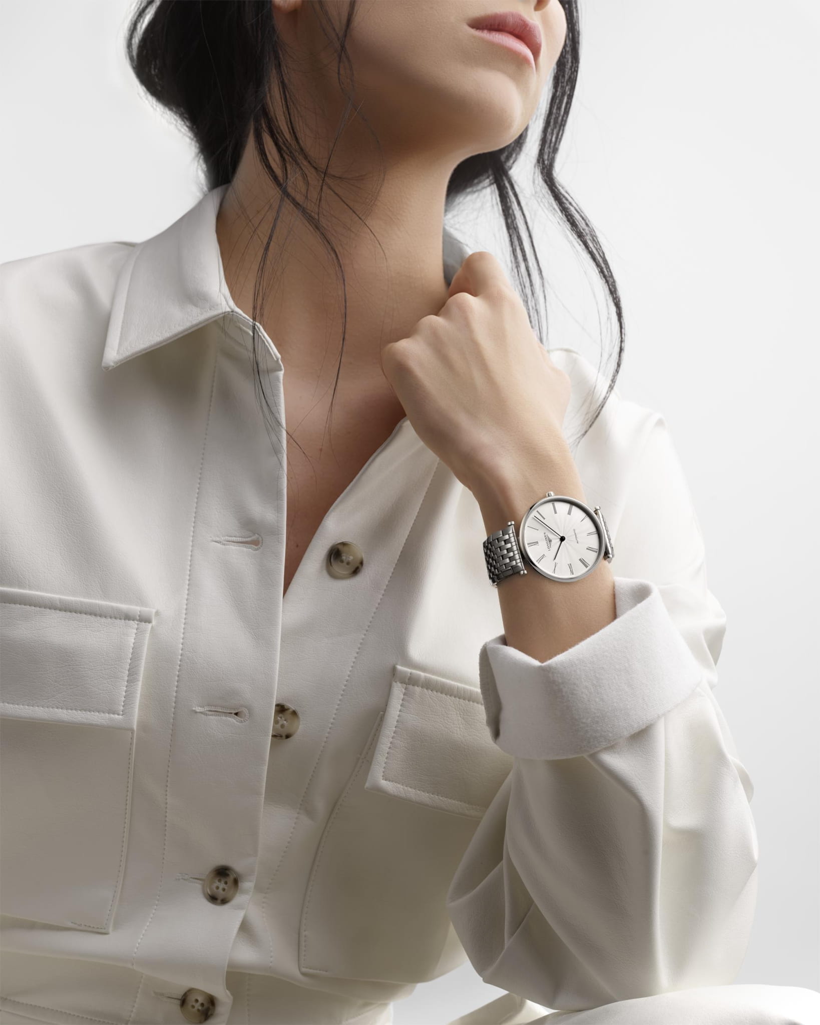 Завершает образ стальной браслет на застёжке «бабочка» с кнопкамиЗастёжка "бабочка"Такой вид застёжки дополняется предохранителями, помогающими избежать случайного раскрытия браслета. Обладают изящным исполнением. , добавляя нотку утонченности и комфорта. Эти часы станут вашим верным спутником, подчеркивая индивидуальность и статус своего обладателя. Позвольте им стать неотъемлемой частью вашего образа, придавая ему особый шарм и элегантность.