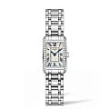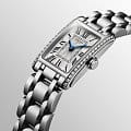 Женские швейцарские часы Longines DolceVita L5.258.0.71.6, кварцевый механизм с высокой точностью. Сапфировое стеклоСапфировое стеклоПрочный и надёжный материал из кристалла сапфира синтетического происхождения, характеризующийся особой твёрдостью и устойчивостью к царапинам и повреждениям. устойчивое к появлению царапин, обладающее высокой прозрачностью. Корпус с 36 бриллиантами группы Top Wesselton IF-VVS общим весом 0.280 карата. Класс водозащиты: 30 метров, позволит защитить корпус от случайных брызг или капель дождя. Браслет из нержавеющей стали на застёжке-бабочке с кнопкамиЗастёжка "бабочка"Такой вид застёжки дополняется предохранителями, помогающими избежать случайного раскрытия браслета. Обладают изящным исполнением. .