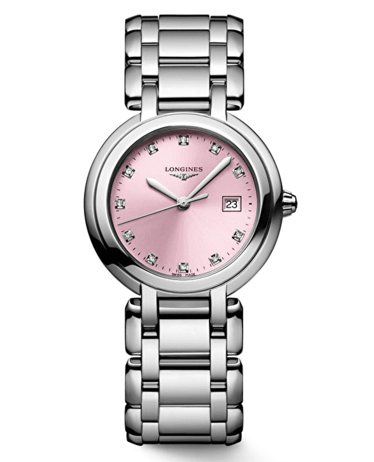 Женские швейцарские часы Longines PrimaLuna L81224996, кварцевый механизм с высокой точностью. Исключительно женственная коллекция. Округлые, нежные линии Longines Prima Luna - дань преклонения перед женственной Луной, символом переменчивости времени. Сапфировое стеклоСапфировое стеклоПрочный и надёжный материал из кристалла сапфира синтетического происхождения, характеризующийся особой твёрдостью и устойчивостью к царапинам и повреждениям. устойчивое к появлению царапин, обладающее высокой прозрачностью. Корпус часов изготовлен из нержавеющей стали. Изысканная чистота циферблата подчеркивает ее мягкий силуэт, обрамленный сиянием бриллиантов. Окошко даты в положении 3 часов. Класс водозащиты: 30 метров, позволит защитить корпус от случайных брызг или капель дождя. Стальной браслет на застёжке «бабочка» с кнопкамиЗастёжка "бабочка"Такой вид застёжки дополняется предохранителями, помогающими избежать случайного раскрытия браслета. Обладают изящным исполнением. .
