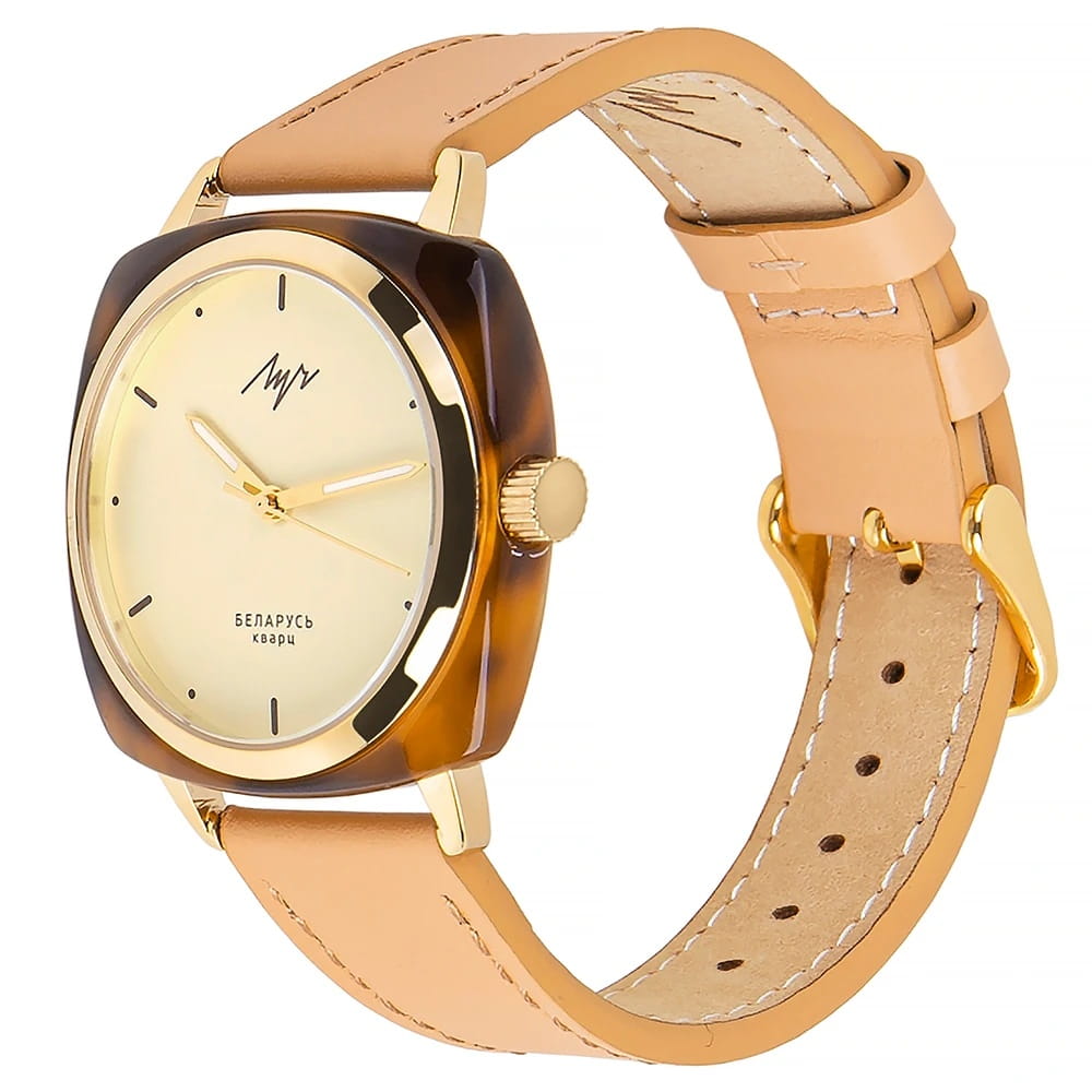 Женские наручные часы Луч 80`s 740247581 — это стильное сочетание элегантности и современного дизайна. Часы идеально подходят для повседневного ношения, а также для особых случаев. Изысканный корпус диаметром 36 мм выполнен из нержавеющей стали с PVD-покрытиемPVDУльтратонкое покрытие наносится в технике вакуумного напыления, сочетает в себе нитрид титана особой прочности со слоем золота или оксида хрома. Несёт в себе декоративную или защитную функцию. и цельного куска пластика, благодаря чему каждый экземпляр обладает уникальным, неповторимым узором. Циферблат защищен минеральным стекломМинеральное стеклоМинеральное стекло представляет собой искусственно выращенный минерал кварца. Такое стекло отличается особой устойчивостью к повреждениям и царапинам. Уступает по некоторым качествам сапфировому стеклу., обеспечивающим устойчивость к царапинам. Метки в виде штрихов, изящная лаконичная стрелка. Часы оснащены кварцевым механизмом высокой точности, а ремешок из кожи со стандартной застежкой гарантирует комфортную посадку на запястье. Стрелки с люминесцентным покрытиемЛюминесцентное покрытиеПозволяет считывать показания времени в темноте. Производители наносят на стрелки, часовые индексы, безель или поверхность циферблата светонакопительный состав, дающий холодное свечение.. Водозащита 30 метров позволит защитить корпус от случайных брызг или капель дождя. Луч — отличный выбор для тех, кто ценит утонченность и качество.