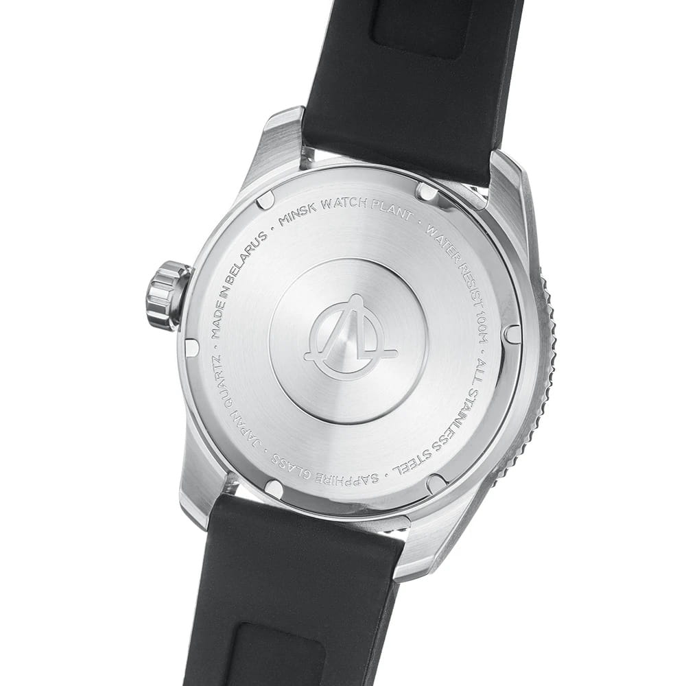Мужские наручные часы Луч Amphibian 76720563 — это стильное сочетание элегантности и современного дизайна. Элегантный корпус диаметром 46.8 мм выполнен из нержавеющей стали, который придает модели особый изысканный вид. Циферблат защищен сапфировым стекломСапфировое стеклоПрочный и надёжный материал из кристалла сапфира синтетического происхождения, характеризующийся особой твёрдостью и устойчивостью к царапинам и повреждениям., обеспечивающим устойчивость к царапинам. Метки в виде штрихов. Часы оснащены кварцевым механизмом, а силиконовый ремень на стандартной застежке гарантирует комфортную посадку на запястье. Поворотный безельБезельВнешний ободок, закрепляющий стекло. В спортивных часах так называется поворотное кольцо с делениями на циферблате, выполняет роль таймера – замеряет отрезки времени на шкале. Неподвижный безель – элемент декора. Однонаправленно вращающийся безель на дайверских часах позволяет фиксировать моменты погружения и выныривания на поверхность. с PVD-покрытиемPVDУльтратонкое покрытие наносится в технике вакуумного напыления, сочетает в себе нитрид титана особой прочности со слоем золота или оксида хрома. Несёт в себе декоративную или защитную функцию. черного цвета. Вынесенный циферблат с 24-х часовым указателем времени, индикацией даты и дня недели. Стрелки и метки с люминесцентным покрытиемЛюминесцентное покрытиеПозволяет считывать показания времени в темноте. Производители наносят на стрелки, часовые индексы, безель или поверхность циферблата светонакопительный состав, дающий холодное свечение. позволяют легко считывать время даже в условиях недостаточного освещения. Водозащита 10 бар позволит защитить корпус от случайных брызг или капель дождя. Луч — отличный выбор для тех, кто ценит утонченность и качество.