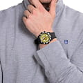 Наручные часы в стиле милитари. Лимитированная серия. Безель вращается в одном направлении. Функция индикации заряда EOL. Материал корпуса: пластик, усиленный прессованный карбон; Материал браслета: полиуретановый с гравировкой; Стекло: Минеральное; Водозащита: 200 м. (WR 200).