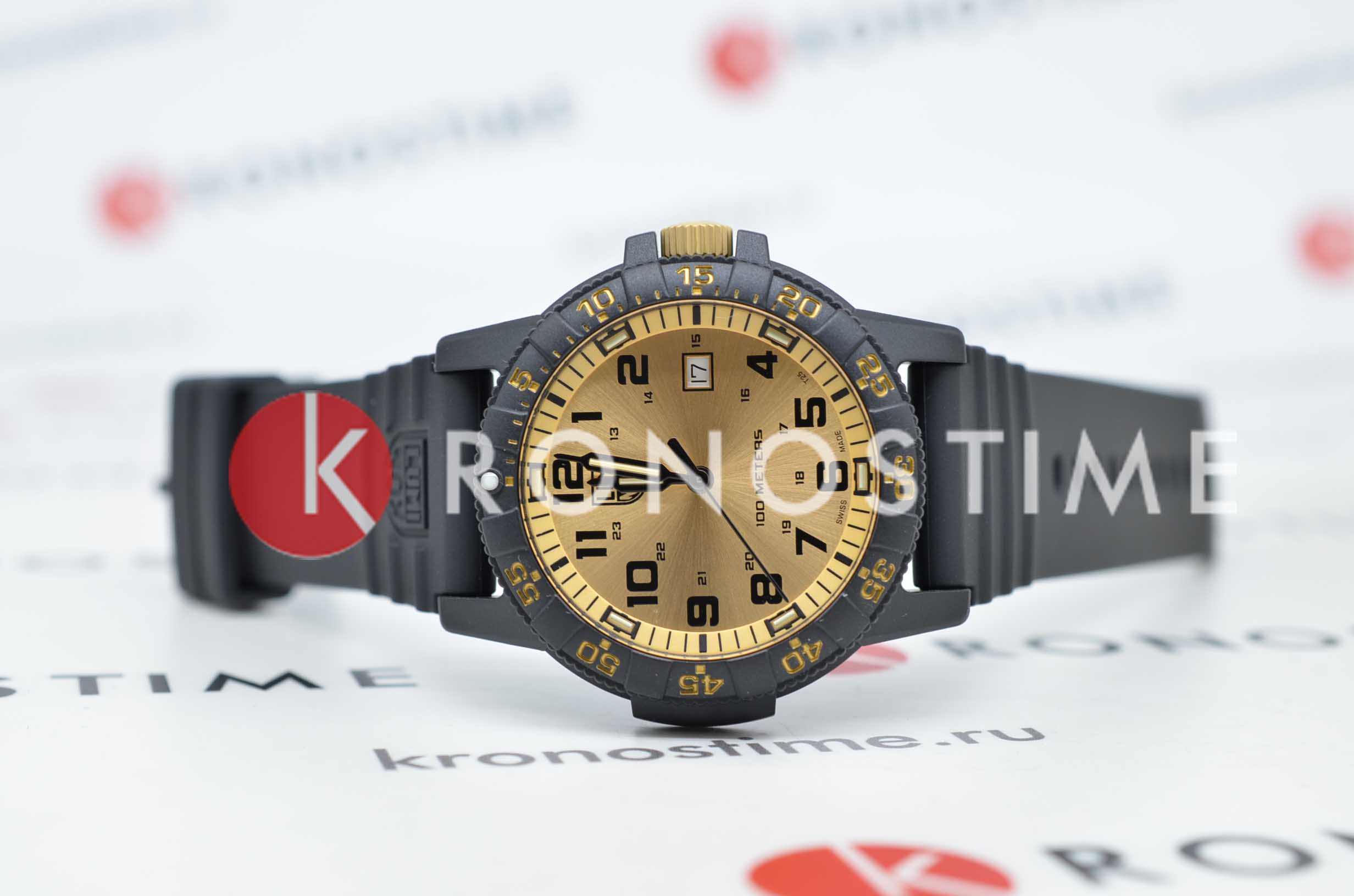 Мужские наручные часы Luminox XS.0325.GP из коллекции Leatherback SEA Turtle Giant сочетают в себе спортивный дизайн и надежность швейцарского качества. Модель обладает круглым корпусом диаметром 44 мм, изготовленным из карбонаКарбонОт «carbon», «carbone» - углерод, углепластик - полимерный композиционный материал из переплетённых под определенным углом между собой нитей углеродного волокна, применяется для изготовления лёгких, но прочных деталей. В часах часто используют для украшения циферблатов и ремешков. Так же карбон используется в изготовлении корпусов. Такие корпуса обладают антикоррозионным свойством, не поддаются электромагнитному излучению, обладают повышенной прочностью и противоударностью. (CARBONOX™), что обеспечивает высокую устойчивость к внешним воздействиям при сохранении легкости. Циферблат золотистого цвета украшен контрастными черными метками и стрелками с , гарантирующим постоянную видимость времени даже в условиях низкой освещенности. Часы оснащены кварцевым механизмом швейцарского производства, обеспечивающим точность хода ±15 секунд в месяц. Защиту циферблата обеспечивает прочное минеральное стеклоМинеральное стеклоМинеральное стекло представляет собой искусственно выращенный минерал кварца. Такое стекло отличается особой устойчивостью к повреждениям и царапинам. Уступает по некоторым качествам сапфировому стеклу., устойчивое к царапинам и механическим повреждениям. Водонепроницаемость модели достигает 10 атмосфер (100 метров), что делает их подходящими для плавания и активного отдыха на воде. Модель также оснащена безелемБезельВнешний ободок, закрепляющий стекло. В спортивных часах так называется поворотное кольцо с делениями на циферблате, выполняет роль таймера – замеряет отрезки времени на шкале. Неподвижный безель – элемент декора. Однонаправленно вращающийся безель на дайверских часах позволяет фиксировать моменты погружения и выныривания на поверхность. с односторонним вращением, что добавляет функциональности при использовании в водных условиях. Ремешок выполнен из полиуретана (PU) с нержавеющей стальной застежкой, что обеспечивает комфортное ношение в течение дня. Дополнительно часы имеют окно даты в положении «3 часа», что делает их практичными для повседневного использования.