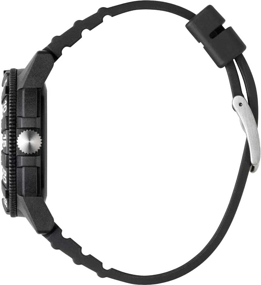 Часы Luminox XS.0329.1 — это надежный швейцарский аксессуар, сочетающий в себе легкость и функциональность. Благодаря корпусу из пластика, усиленного прессованным карбономКарбонОт «carbon», «carbone» - углерод, углепластик - полимерный композиционный материал из переплетённых под определенным углом между собой нитей углеродного волокна, применяется для изготовления лёгких, но прочных деталей. В часах часто используют для украшения циферблатов и ремешков. Так же карбон используется в изготовлении корпусов. Такие корпуса обладают антикоррозионным свойством, не поддаются электромагнитному излучению, обладают повышенной прочностью и противоударностью., они отличаются прочностью и малым весом. Черный циферблат оснащен уникальной подсветкой, которая позволяет узнать время даже в полной темноте. Технология LLTLLTLLT — это автономный механизм подсветки, основанный на использовании микроскопических газонаполненных элементов. Специальные герметичные капсулы из боросиликатного стекла, интегрированные в циферблат, генерируют свечение без необходимости подключения к внешним источникам энергии. Для их работы не требуется ни дополнительный свет, ни механическое воздействие (например, нажатие кнопки). Свечение возникает благодаря химическому процессу: реакция между тритием, заключенным в капсулах, и люминофорным покрытием создает стабильное автономное освещение. Технология обеспечивает энергетическую независимость и долговечность подсветки.-подсветки обеспечивает превосходную видимость ночью на протяжении 25 лет. Часы поддерживают как 12-часовой, так и 24-часовой формат времени, что делает их удобными для людей с разным режимом дня. БезельБезельВнешний ободок, закрепляющий стекло. В спортивных часах так называется поворотное кольцо с делениями на циферблате, выполняет роль таймера – замеряет отрезки времени на шкале. Неподвижный безель – элемент декора. Однонаправленно вращающийся безель на дайверских часах позволяет фиксировать моменты погружения и выныривания на поверхность., вращающийся в одном направлении, оснащен светящейся меткой на 12 часов, что добавляет удобства в использовании. Минеральное стеклоМинеральное стеклоМинеральное стекло представляет собой искусственно выращенный минерал кварца. Такое стекло отличается особой устойчивостью к повреждениям и царапинам. Уступает по некоторым качествам сапфировому стеклу. повышенной прочности защищает циферблат от повреждений, а водозащита класса 100WR позволяет не беспокоиться о воздействии влаги. Календарь с индикацией числа добавляет практичности. Заводная головка с защитой и двойной уплотнительной прокладкой гарантирует герметичность, а завинчивающаяся задняя крышка добавляет надежности конструкции. Полиуретановый черный ремешок с классической застежкой обеспечивает комфортное ношение и надежность фиксации на запястье. С размерами корпуса D 44мм, толщиной 12мм и весом всего 50г, эти часы представляют собой идеальное сочетание функциональности и стиля, удовлетворяющее требованиям самых взыскательных покупателей.