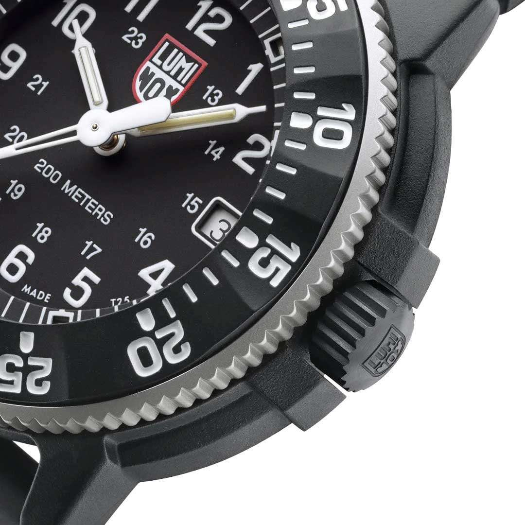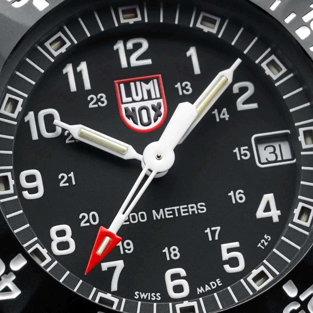 Часы Luminox XS.3001.H.SET — это символ надежности и стиля, созданный специально для мужчин, которые не знают преград. Эти швейцарские часы, посвященные 35-летию создания первых моделей Luminox, оснащены кварцевым механизмом с калибром ETA F06.412, обеспечивающим высокую точность. Корпус выполнен из прочного карбона CARBONOX со стальной вставкой, что делает его устойчивым к износу и внешним воздействиям. Черный циферблат защищен сапфировым стекломСапфировое стеклоПрочный и надёжный материал из кристалла сапфира синтетического происхождения, характеризующийся особой твёрдостью и устойчивостью к царапинам и повреждениям. с антибликовым покрытиемАнтибликовое покрытиеСлой оксида металла в 0,13-0,3 микрон, благодаря которому стекло часов не бликует и не отражает свет. Антибликовое покрытие уменьшает отражение света в 10 раз, обеспечивая отличную читаемость показателей циферблата., что повышает его долговечность и улучшает читаемость при ярком освещении. Водозащита до 200 метров позволяет использовать часы в самых экстремальных условиях, включая водные виды спорта. Часы поддерживают 12- и 24-часовой формат времени, а метки в виде арабских цифр и окошко даты в положении 3 часа добавляют удобства в повседневном использовании. Специальная технология LLTLLTLLT — это автономный механизм подсветки, основанный на использовании микроскопических газонаполненных элементов. Специальные герметичные капсулы из боросиликатного стекла, интегрированные в циферблат, генерируют свечение без необходимости подключения к внешним источникам энергии. Для их работы не требуется ни дополнительный свет, ни механическое воздействие (например, нажатие кнопки). Свечение возникает благодаря химическому процессу: реакция между тритием, заключенным в капсулах, и люминофорным покрытием создает стабильное автономное освещение. Технология обеспечивает энергетическую независимость и долговечность подсветки.-подсветки позволяет определять время в полной темноте на протяжении 25 лет. Стальной вращающийся безельБезельВнешний ободок, закрепляющий стекло. В спортивных часах так называется поворотное кольцо с делениями на циферблате, выполняет роль таймера – замеряет отрезки времени на шкале. Неподвижный безель – элемент декора. Однонаправленно вращающийся безель на дайверских часах позволяет фиксировать моменты погружения и выныривания на поверхность. c PVD-покрытиемPVDУльтратонкое покрытие наносится в технике вакуумного напыления, сочетает в себе нитрид титана особой прочности со слоем золота или оксида хрома. Несёт в себе декоративную или защитную функцию. со светящейся меткой на 12 часов вращается в одном направлении, обеспечивая дополнительный комфорт и функциональность. Завинчивающаяся заводная головка с защитой и стальная задняя крышка с гравировкой из стали 316L повышают герметичность и долговечность конструкции. Батарея часов рассчитана на 50 месяцев работы. Удобный полиуретановый ремешок с классической застежкой обеспечивает комфортное ношение. В комплекте идет монета Luminox Challenge, посвященная 35-летнему юбилею создания часов.