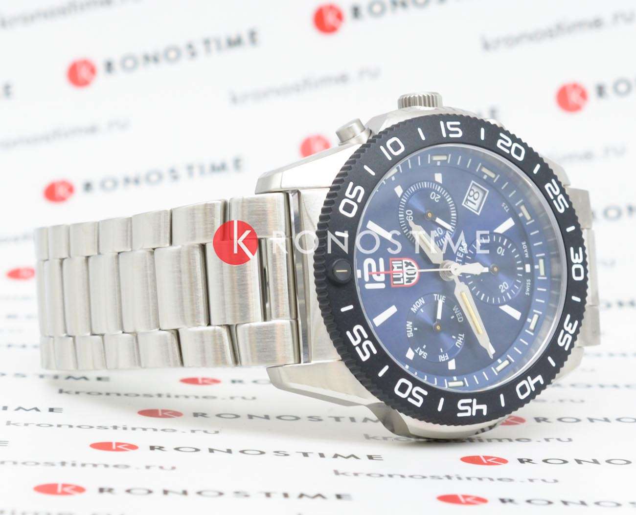 Мужские наручные часы-хронографХронографФункция позволяет измерять отрезки времени с особой точностью: часы, минуты, секунды. Верным признаком хронографа является наличие на циферблате 3 дополнительных окошек-счётчиков. Luminox XS.3144 из коллекции Pacific Diver сочетают в себе спортивный дизайн и надежность швейцарского качества . Модель обладает круглым корпусом диаметром 44 мм, изготовленным из нержавеющей стали с PVD-покрытиемPVDУльтратонкое покрытие наносится в технике вакуумного напыления, сочетает в себе нитрид титана особой прочности со слоем золота или оксида хрома. Несёт в себе декоративную или защитную функцию., что обеспечивает высокую устойчивость к внешним воздействиям и долговечность . Циферблат черного цвета украшен контрастными метками и стрелками с люминесцентным покрытиемЛюминесцентное покрытиеПозволяет считывать показания времени в темноте. Производители наносят на стрелки, часовые индексы, безель или поверхность циферблата светонакопительный состав, дающий холодное свечение., гарантирующим постоянную видимость времени даже в условиях низкой освещенности благодаря системе LLTLLTLLT — это автономный механизм подсветки, основанный на использовании микроскопических газонаполненных элементов. Специальные герметичные капсулы из боросиликатного стекла, интегрированные в циферблат, генерируют свечение без необходимости подключения к внешним источникам энергии. Для их работы не требуется ни дополнительный свет, ни механическое воздействие (например, нажатие кнопки). Свечение возникает благодаря химическому процессу: реакция между тритием, заключенным в капсулах, и люминофорным покрытием создает стабильное автономное освещение. Технология обеспечивает энергетическую независимость и долговечность подсветки. (микрогазовые огни) . Часы оснащены кварцевым механизмом швейцарского производства Ronda 515, обеспечивающим точность хода ±15 секунд в месяц . Защиту циферблата обеспечивает прочное сапфировое стеклоСапфировое стеклоПрочный и надёжный материал из кристалла сапфира синтетического происхождения, характеризующийся особой твёрдостью и устойчивостью к царапинам и повреждениям. с антибликовым покрытиемАнтибликовое покрытиеСлой оксида металла в 0,13-0,3 микрон, благодаря которому стекло часов не бликует и не отражает свет. Антибликовое покрытие уменьшает отражение света в 10 раз, обеспечивая отличную читаемость показателей циферблата., устойчивое к царапинам и механическим повреждениям . Водонепроницаемость модели достигает 20 атмосфер (200 метров), что делает их подходящими для плавания и активного отдыха на воде, включая дайвинг . Модель также оснащена безелемБезельВнешний ободок, закрепляющий стекло. В спортивных часах так называется поворотное кольцо с делениями на циферблате, выполняет роль таймера – замеряет отрезки времени на шкале. Неподвижный безель – элемент декора. Однонаправленно вращающийся безель на дайверских часах позволяет фиксировать моменты погружения и выныривания на поверхность. с односторонним вращением, что добавляет функциональности при использовании в водных условиях . Стальной браслет на раскладной застёжкеРаскладная застёжкаТакой тип застёжки используется только на браслетах из металла. Она никогда не раскрывается полностью, происходит разделение на 2 и более частей.