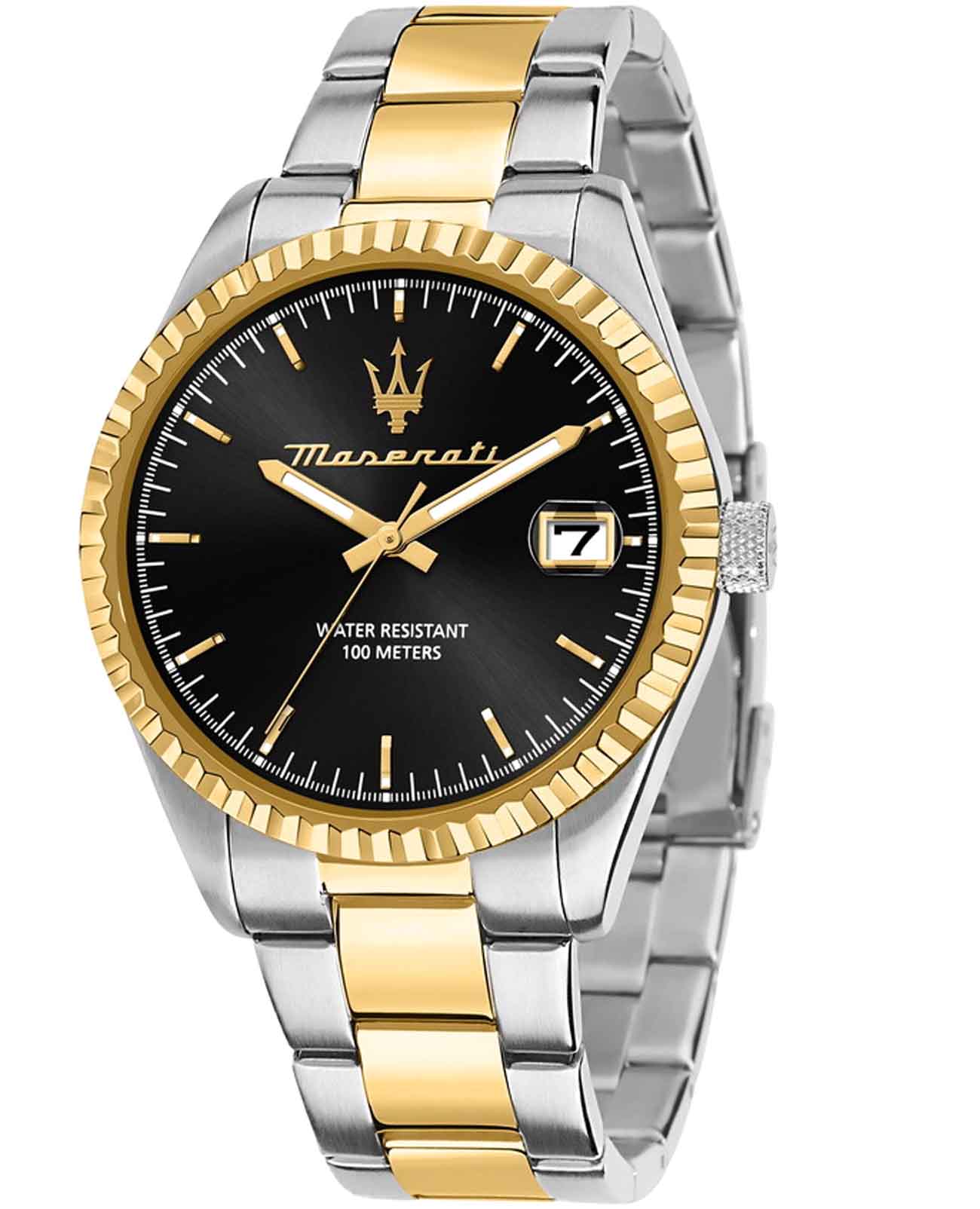 Часы Maserati Competizione R8853100042 отличаются стильным и современным дизайном, идеально подходящим для деловых и повседневных образов. Эти наручные часы оснащены надёжным кварцевым механизмом, который обеспечивает высокую точность показаний времени. Корпус часов диаметром 43 мм выполнен из прочной стали, что гарантирует долговечность и устойчивость к внешним воздействиям. Минеральное стеклоМинеральное стеклоМинеральное стекло представляет собой искусственно выращенный минерал кварца. Такое стекло отличается особой устойчивостью к повреждениям и царапинам. Уступает по некоторым качествам сапфировому стеклу. защищает циферблат. Часы обладают водостойкостью до 100 метров (10 АТМ), что позволяет не беспокоиться о попадании влаги при плавании или занятиях водными видами спорта. Стальной браслет с раскладной застёжкойРаскладная застёжкаТакой тип застёжки используется только на браслетах из металла. Она никогда не раскрывается полностью, происходит разделение на 2 и более частей. Раскладывающая застёжка снизит вероятность потери часов к минимуму. не только обеспечивает комфортное ношение, но и придаёт аксессуару дополнительную элегантность, подчёркивая его современный стиль. Люминесцентное покрытиеЛюминесцентное покрытиеПозволяет считывать показания времени в темноте. Производители наносят на стрелки, часовые индексы, безель или поверхность циферблата светонакопительный состав, дающий холодное свечение. на стрелках обеспечивает отличную видимость в темноте. Метки в виде штрихов. Граненый безель. Эти часы станут отличным дополнением к вашему гардеробу, сочетая в себе функциональность и изысканный дизайн.