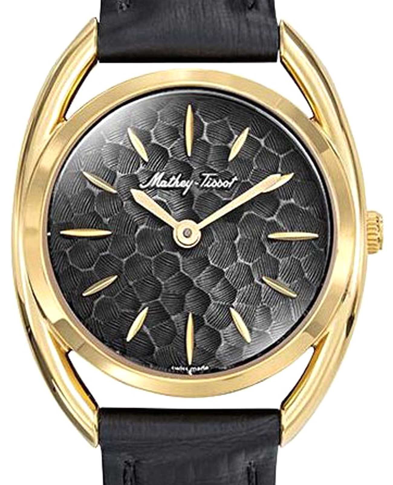 Женские кварцевые часы Mathey-Tissot Saphira D933PLYN — это стильное сочетание элегантности и современного дизайна. Изящный корпус выполнен из стали с PVD-покрытиемPVDУльтратонкое покрытие наносится в технике вакуумного напыления, сочетает в себе нитрид титана особой прочности со слоем золота или оксида хрома. Несёт в себе декоративную или защитную функцию. и прекрасно впишется в ваш исключительный стиль. Изысканный циферблат с метками придает модели особый блеск и защищен минеральным стекломМинеральное стеклоМинеральное стекло представляет собой искусственно выращенный минерал кварца. Такое стекло отличается особой устойчивостью к повреждениям и царапинам. Уступает по некоторым качествам сапфировому стеклу., обеспечивающим устойчивость к царапинам. Циферблат украшен декоративным узором. Мечевидные стрелки в стиле Sword с люминесцентным покрытиемЛюминесцентное покрытиеПозволяет считывать показания времени в темноте. Производители наносят на стрелки, часовые индексы, безель или поверхность циферблата светонакопительный состав, дающий холодное свечение., которое светится в темноте после непродолжительной зарядки на свету. Часы оснащены надежным кварцевым механизмом. Кожаный ремешок на стандартной застёжке гарантирует комфортное и безопасное ношение. Класс водозащиты: 50 метров позволит защитить корпус от случайных брызг или капель дождя. Mathey-Tissot — отличный выбор для тех, кто ценит утонченность и качество.