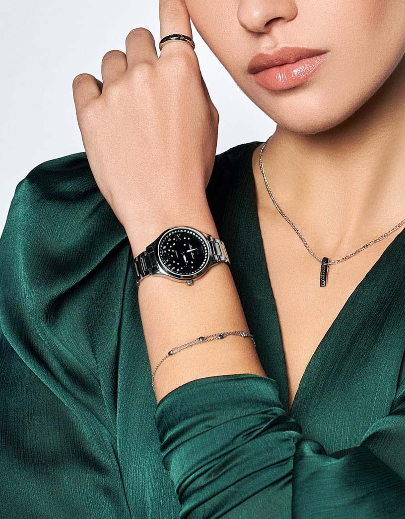 Женские кварцевые часы Mathey-Tissot Nicole D985SAN — это стильное сочетание элегантности и современного дизайна. Изящный корпус выполнен из нержавеющей стали, диаметром 32 мм, прекрасно впишется в ваш исключительный стиль. Изысканный циферблат с метками в виде римских цифр придает модели особый блеск и защищен сапфировым стекломСапфировое стеклоПрочный и надёжный материал из кристалла сапфира синтетического происхождения, характеризующийся особой твёрдостью и устойчивостью к царапинам и повреждениям., обеспечивающим устойчивость к царапинам. Циферблат украшен кристаллами. Мечевидные стрелки в стиле Dauphine. Часы оснащены надежным кварцевым механизмом. Рифленая заводная головка. Стальной браслет на застёжке-бабочке с кнопкамиЗастёжка "бабочка"Такой вид застёжки дополняется предохранителями, помогающими избежать случайного раскрытия браслета. Обладают изящным исполнением. гарантирует комфортное и безопасное ношение. Класс водозащиты: 50 метров позволит защитить корпус от случайных брызг или капель дождя. Mathey-Tissot — отличный выбор для тех, кто ценит утонченность и качество.
