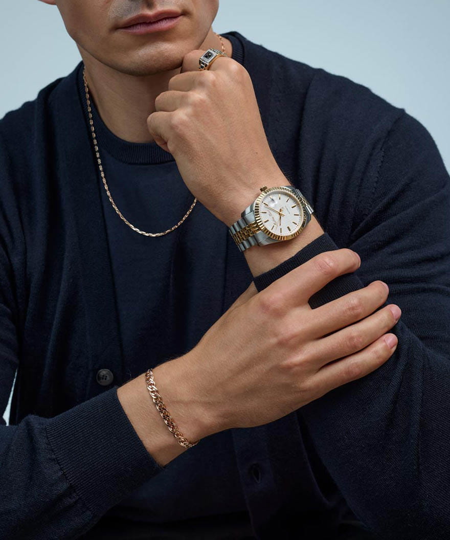 Мужские механические часы с автоподзаводом Mathey-Tissot Mathy H1810ATBI — это стильное сочетание элегантности и современного дизайна. Изящный корпус выполнен из нержавеющей стали, диаметром 42 мм, что придаст образу элегантности и надежности. Изысканный циферблат с метками в виде штрихов придает модели особый блеск. Циферблат защищен минеральным стекломМинеральное стеклоМинеральное стекло представляет собой искусственно выращенный минерал кварца. Такое стекло отличается особой устойчивостью к повреждениям и царапинам. Уступает по некоторым качествам сапфировому стеклу. с сапфировым покрытием, обеспечивает устойчивость к царапинам. БезельБезельВнешний ободок, закрепляющий стекло. В спортивных часах так называется поворотное кольцо с делениями на циферблате, выполняет роль таймера – замеряет отрезки времени на шкале. Неподвижный безель – элемент декора. Однонаправленно вращающийся безель на дайверских часах позволяет фиксировать моменты погружения и выныривания на поверхность. с PVD-покрытиемPVDУльтратонкое покрытие наносится в технике вакуумного напыления, сочетает в себе нитрид титана особой прочности со слоем золота или оксида хрома. Несёт в себе декоративную или защитную функцию. золотистого цвета. Стрелки с люминесцентным покрытиемЛюминесцентное покрытиеПозволяет считывать показания времени в темноте. Производители наносят на стрелки, часовые индексы, безель или поверхность циферблата светонакопительный состав, дающий холодное свечение.. Окошко даты находится в положении 3 часа. Стальной браслет с частичным PVD-покрытиемPVDУльтратонкое покрытие наносится в технике вакуумного напыления, сочетает в себе нитрид титана особой прочности со слоем золота или оксида хрома. Несёт в себе декоративную или защитную функцию. на застёжке-бабочке с кнопкамиЗастёжка "бабочка"Такой вид застёжки дополняется предохранителями, помогающими избежать случайного раскрытия браслета. Обладают изящным исполнением. , гарантирует комфортное и безопасное ношение. Рифленая заводная головка. Класс водозащиты: 50 метров позволит защитить корпус от случайных брызг или капель дождя. Mathey-Tissot — отличный выбор для тех, кто ценит утонченность и качество.