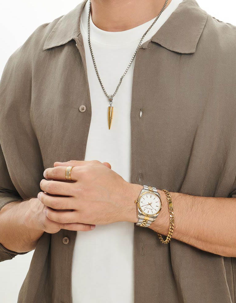 Мужские кварцевые часы Mathey-Tissot Mathy H810BI — это стильное сочетание элегантности и современного дизайна. Изящный корпус выполнен из нержавеющей стали, диаметром 40 мм, что придаст образу элегантности и надежности. Изысканный циферблат с метками в виде штрихов придает модели особый блеск. Циферблат защищен минеральным стекломМинеральное стеклоМинеральное стекло представляет собой искусственно выращенный минерал кварца. Такое стекло отличается особой устойчивостью к повреждениям и царапинам. Уступает по некоторым качествам сапфировому стеклу., обеспечивает устойчивость к царапинам. Стрелки с люминесцентным покрытиемЛюминесцентное покрытиеПозволяет считывать показания времени в темноте. Производители наносят на стрелки, часовые индексы, безель или поверхность циферблата светонакопительный состав, дающий холодное свечение. SuperLumiNova, которое светится в темноте после непродолжительной зарядки на свету. БезельБезельВнешний ободок, закрепляющий стекло. В спортивных часах так называется поворотное кольцо с делениями на циферблате, выполняет роль таймера – замеряет отрезки времени на шкале. Неподвижный безель – элемент декора. Однонаправленно вращающийся безель на дайверских часах позволяет фиксировать моменты погружения и выныривания на поверхность. с PVD-покрытиемPVDУльтратонкое покрытие наносится в технике вакуумного напыления, сочетает в себе нитрид титана особой прочности со слоем золота или оксида хрома. Несёт в себе декоративную или защитную функцию. золотистого цвета. Окошко даты находится в положении 3 часа. Часы оснащены надежным кварцевым механизмом. Стальной браслет с частичным PVD-покрытиемPVDУльтратонкое покрытие наносится в технике вакуумного напыления, сочетает в себе нитрид титана особой прочности со слоем золота или оксида хрома. Несёт в себе декоративную или защитную функцию. на раскладной застёжке с фиксаторомРаскладная застёжкаТакой тип застёжки используется только на браслетах из металла. Она никогда не раскрывается полностью, происходит разделение на 2 и более частей. Раскладывающая застёжка снизит вероятность потери часов к минимуму., гарантирует комфортное и безопасное ношение. Рифленая заводная головка. Класс водозащиты: 50 метров позволит защитить корпус от случайных брызг или капель дождя. Mathey-Tissot — отличный выбор для тех, кто ценит утонченность и качество.