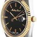 Мужские кварцевые часы Mathey-Tissot Rolly H810BN — это стильное сочетание элегантности и современного дизайна. Изящный корпус выполнен из нержавеющей стали серебристого цвета, диаметром 40 мм, что придаст образу элегантности и надежности. Изысканный циферблат с метками в виде штрихов придает модели особый блеск. Циферблат защищен минеральным стекломМинеральное стеклоМинеральное стекло представляет собой искусственно выращенный минерал кварца. Такое стекло отличается особой устойчивостью к повреждениям и царапинам. Уступает по некоторым качествам сапфировому стеклу., обеспечивающий устойчивость к царапинам. Стрелки с люминесцентным покрытиемЛюминесцентное покрытиеПозволяет считывать показания времени в темноте. Производители наносят на стрелки, часовые индексы, безель или поверхность циферблата светонакопительный состав, дающий холодное свечение.. Рифленый безельБезельВнешний ободок, закрепляющий стекло. В спортивных часах так называется поворотное кольцо с делениями на циферблате, выполняет роль таймера – замеряет отрезки времени на шкале. Неподвижный безель – элемент декора. Однонаправленно вращающийся безель на дайверских часах позволяет фиксировать моменты погружения и выныривания на поверхность. с PVD-покрытиемPVDУльтратонкое покрытие наносится в технике вакуумного напыления, сочетает в себе нитрид титана особой прочности со слоем золота или оксида хрома. Несёт в себе декоративную или защитную функцию. золотистого цвета. Окошко даты находится в положении 3 часа. Часы оснащены надежным кварцевым механизмом. Стальной браслет с частичным PVD-покрытиемPVDУльтратонкое покрытие наносится в технике вакуумного напыления, сочетает в себе нитрид титана особой прочности со слоем золота или оксида хрома. Несёт в себе декоративную или защитную функцию. на раскладной застёжкеРаскладная застёжкаТакой тип застёжки используется только на браслетах из металла. Она никогда не раскрывается полностью, происходит разделение на 2 и более частей. Раскладывающая застёжка снизит вероятность потери часов к минимуму., гарантирует комфортное и безопасное ношение. Класс водозащиты: 50 метров позволит защитить корпус от случайных брызг или капель дождя. Mathey-Tissot  — отличный выбор для тех, кто ценит утонченность и качество.