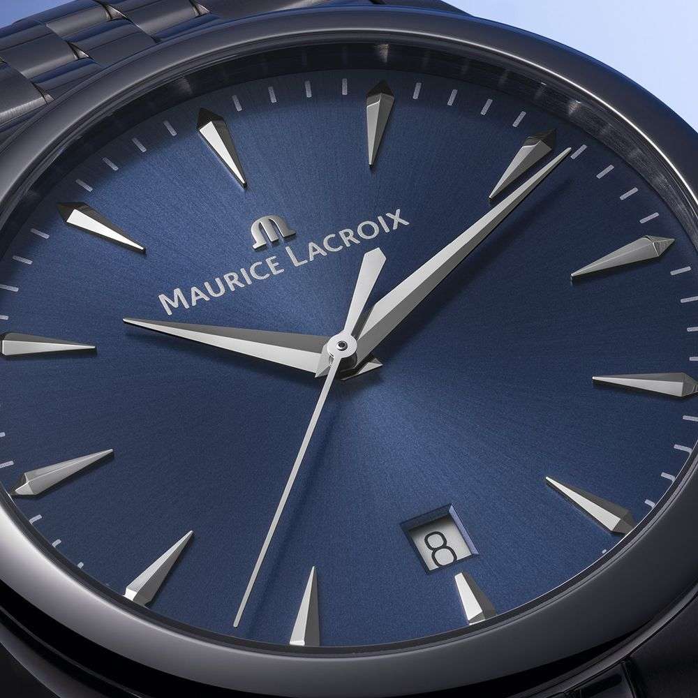 Maurice Lacroix 1975 Quartz 751007-SS002-430-1 — изящная модель в винтажном стиле с современным исполнением и безупречным вниманием к деталям. Корпус диаметром 39 мм изготовлен из нержавеющей стали с сочетанием полированной и сатинированной отделки. Элегантные пропорции подчёркнуты тонким профилем. Циферблат защищён сапфировым стекломСапфировое стеклоПрочный и надёжный материал из кристалла сапфира синтетического происхождения, характеризующийся особой твёрдостью и устойчивостью к царапинам и повреждениям. с двойным антибликовым покрытиемАнтибликовое покрытиеСлой оксида металла в 0,13-0,3 микрон, благодаря которому стекло часов не бликует и не отражает свет. Антибликовое покрытие уменьшает отражение света в 10 раз, обеспечивая отличную читаемость показателей циферблата., обеспечивающим высокую прозрачность. Синий циферблат с солнечным узором оформлен в духе 70-х годов: родиевые стрелки, скошенные индексы и окно даты на «6 часах». Стрелки и метки покрыты люминесцентным покрытиемЛюминесцентное покрытиеПозволяет считывать показания времени в темноте. Производители наносят на стрелки, часовые индексы, безель или поверхность циферблата светонакопительный состав, дающий холодное свечение. для читаемости в тёмное время. Внутри установлен швейцарский кварцевый механизм, отличающийся стабильностью и точностью. Модель оснащена браслетом из нержавеющей стали с системой быстрой замены на застёжкой «бабочка» с кнопкамиЗастёжка "бабочка"Такой вид застёжки дополняется предохранителями, помогающими избежать случайного раскрытия браслета. Обладают изящным исполнением. для надёжной и комфортной посадки. Водонепроницаемость до 100 метров делает часы практичными для ежедневного ношения. Maurice Lacroix 1975 — утончённая ретро-эстетика с акцентом на стиль и комфорт.