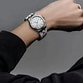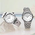 Мужские швейцарские кварцевые часы Maurice Lacroix Aikon Quartz AI1106-SS002-150-1. Сапфировое стеклоСапфировое стеклоПрочный и надёжный материал из кристалла сапфира синтетического происхождения, характеризующийся особой твёрдостью и устойчивостью к царапинам и повреждениям. устойчивое к появлению царапин, обладающее высокой прозрачностью. Белый циферблат. Стрелки с люминесцентным покрытиемЛюминесцентное покрытиеПозволяет считывать показания времени в темноте. Производители наносят на стрелки, часовые индексы, безель или поверхность циферблата светонакопительный состав, дающий холодное свечение.. Метки на циферблате украшены бриллиантами. Класс водозащиты: 100 метров, позволит плавать, нырять и заниматься другими водными видами спорта. Окошко даты находится в положении 3 часов. Корпус и браслет часов изготовлены из стали с частичным. Каучуковый ремешок с классической застежкой.