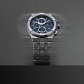 Модель оснащена кварцевым механизмом с функцией хронографаХронографФункция позволяет измерять отрезки времени с особой точностью: часы, минуты, секунды. Верным признаком хронографа является наличие на циферблате 3 дополнительных окошек-счётчиков., включающим центральную секундную стрелку, 30-минутный счётчик на позиции «9 часов» и 1/10-секундный счётчик на позиции «12 часов». Индикация даты расположена в положении «6 часов».