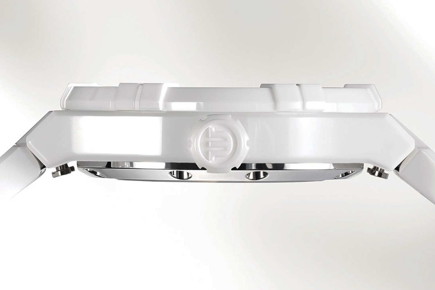 Швейцарские часы Maurice Lacroix Aikon Automatic AI6007-CRM72-130-7, воплощающие современный стиль и безупречное швейцарское качество. Керамический корпус и безельБезельВнешний ободок, закрепляющий стекло. В спортивных часах так называется поворотное кольцо с делениями на циферблате, выполняет роль таймера – замеряет отрезки времени на шкале. Неподвижный безель – элемент декора. Однонаправленно вращающийся безель на дайверских часах позволяет фиксировать моменты погружения и выныривания на поверхность. с эффектным дизайном из шести "когтей. Высота корпуса составляет всего 11 мм, что делает модель элегантной и удобной в ношении. Сапфировое стеклоСапфировое стеклоПрочный и надёжный материал из кристалла сапфира синтетического происхождения, характеризующийся особой твёрдостью и устойчивостью к царапинам и повреждениям. с двойным антибликовым покрытиемАнтибликовое покрытиеСлой оксида металла в 0,13-0,3 микрон, благодаря которому стекло часов не бликует и не отражает свет. Антибликовое покрытие уменьшает отражение света в 10 раз, обеспечивая отличную читаемость показателей циферблата. надежно защищает гильошированный белый циферблат с узором Clous de Paris. Стрелки с люминесцентным покрытиемЛюминесцентное покрытиеПозволяет считывать показания времени в темноте. Производители наносят на стрелки, часовые индексы, безель или поверхность циферблата светонакопительный состав, дающий холодное свечение., что облегчает чтение времени даже в условиях слабого освещения. На 3 часах расположено окошко с указателем даты. Часы оснащены кварцевым механизмом, обеспечивающим точный ход. Водостойкость до 20 ATM позволяет не беспокоиться о воздействии воды в повседневной жизни. Часы комплектуются керамическим браслетом с застежкой «бабочка»Застёжка "бабочка"Такой вид застёжки дополняется предохранителями, помогающими избежать случайного раскрытия браслета. Обладают изящным исполнением. , раскладывающаяся при нажатии кнопок двойной блокировки и гравировкой Maurice Lacroix завершают образ, обеспечивая удобство и стиль.