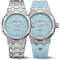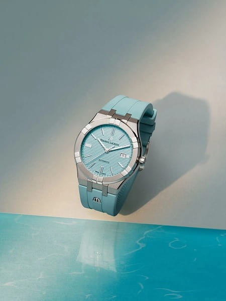Швейцарские часы Maurice Lacroix Aikon Automatic AI6008-SS00F-431-C, воплощающие современный стиль и безупречное швейцарское качество. Корпус из нержавеющей стали диаметром 42 мм и высотой 11 мм совмещает матовую и полированную отделку, придавая часам изысканный вид. Сапфировое стеклоСапфировое стеклоПрочный и надёжный материал из кристалла сапфира синтетического происхождения, характеризующийся особой твёрдостью и устойчивостью к царапинам и повреждениям. с двойным антибликовым покрытиемАнтибликовое покрытиеСлой оксида металла в 0,13-0,3 микрон, благодаря которому стекло часов не бликует и не отражает свет. Антибликовое покрытие уменьшает отражение света в 10 раз, обеспечивая отличную читаемость показателей циферблата. надежно защищает гильошированный голубой циферблат с узором Clous de Paris. Часы снабжены задней крышкой с сапфировым стеклом, позволяющим увидеть изысканно декорированный автоматический механизм ML115, обладающий запасом хода в 38 часов. БезельБезельВнешний ободок, закрепляющий стекло. В спортивных часах так называется поворотное кольцо с делениями на циферблате, выполняет роль таймера – замеряет отрезки времени на шкале. Неподвижный безель – элемент декора. Однонаправленно вращающийся безель на дайверских часах позволяет фиксировать моменты погружения и выныривания на поверхность. с узнаваемым дизайном из шести "когтей" и завинчивающаяся заводная головка подчеркивают уверенный характер модели. Часы водонепроницаемы до 20 ATM, что делает их отличным выбором для активного образа жизни. Стрелки с люминесцентным покрытиемЛюминесцентное покрытиеПозволяет считывать показания времени в темноте. Производители наносят на стрелки, часовые индексы, безель или поверхность циферблата светонакопительный состав, дающий холодное свечение., что облегчает чтение времени даже в условиях слабого освещения. На 3 часах расположено окошко с датой, добавляющее функциональности. Часы комплектуются браслетом из нержавеющей стали, и застежка «бабочка»Застёжка "бабочка"Такой вид застёжки дополняется предохранителями, помогающими избежать случайного раскрытия браслета. Обладают изящным исполнением. , раскладывающаяся при нажатии кнопок двойной блокировки и гравировкой Maurice Lacroix завершают образ, обеспечивая удобство и стиль. Особенность этой модели - дополнительный резиновый ремешок голубого цвета со стандартной застежкой.