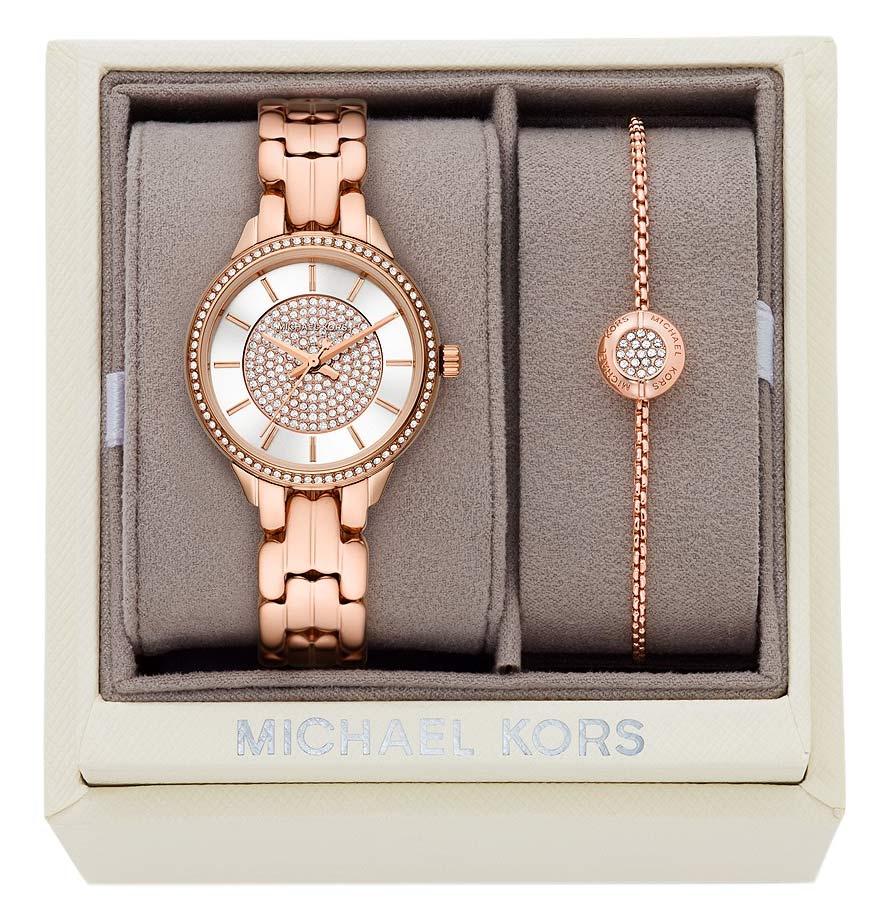 Часы Michael Kors являются атрибутом роскошного образа жизни, гармонично сочетая в себе практичность и невероятный модный дизайн. Несмотря на то, что аксессуар является представителем стиля fashion, дизайнеры не забыли о классических элементах оформления. Это привело к сохранению актуальности на множество сезонов вперёд. Брендовый аксессуар идеально дополнит ваш образ, он может как подчеркнуть ваши индивидуальные черты, так и наделить офисный костюм нотками оригинальности. Наручные часы комплектуются японскими механизмами, отличающиеся надёжностью и высокой точностью хода. Для защиты циферблата используется минеральное стекло, устойчивое к образованию царапин.