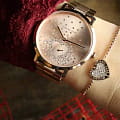 Женские американские часы Michael Kors Jaryn MK3621, кварцевый механизм с высокой точностью. Минеральное стеклоМинеральное стеклоМинеральное стекло представляет собой искусственно выращенный минерал кварца. Такое стекло отличается особой устойчивостью к повреждениям и царапинам. Уступает по некоторым качествам сапфировому стеклу., устойчивое к мелким механическим повреждениям. Корпус часов выполнен из нержавеющей стали с PVD-покрытиемPVDУльтратонкое покрытие наносится в технике вакуумного напыления, сочетает в себе нитрид титана особой прочности со слоем золота или оксида хрома. Несёт в себе декоративную или защитную функцию.. Циферблат украшен кристаллами. Класс водозащиты: 50 метров, позволит защитить корпус от случайных брызг или капель дождя. Стальной браслет с PVD-покрытиемPVDУльтратонкое покрытие наносится в технике вакуумного напыления, сочетает в себе нитрид титана особой прочности со слоем золота или оксида хрома. Несёт в себе декоративную или защитную функцию. на раскладной застёжкеРаскладная застёжкаТакой тип застёжки используется только на браслетах из металла. Она никогда не раскрывается полностью, происходит разделение на 2 и более частей. Раскладывающая застёжка снизит вероятность потери часов к минимуму..