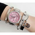 Женские американские часы- хронографХронографФункция позволяет измерять отрезки времени с особой точностью: часы, минуты, секунды. Верным признаком хронографа является наличие на циферблате 3 дополнительных окошек-счётчиков. Michael Kors Parker MK6105, кварцевый механизм с высокой точностью. Минеральное стеклоМинеральное стеклоМинеральное стекло представляет собой искусственно выращенный минерал кварца. Такое стекло отличается особой устойчивостью к повреждениям и царапинам. Уступает по некоторым качествам сапфировому стеклу., устойчивое к мелким механическим повреждениям. Корпус часов выполнен из нержавеющей стали. БезельБезельВнешний ободок, закрепляющий стекло. В спортивных часах так называется поворотное кольцо с делениями на циферблате, выполняет роль таймера – замеряет отрезки времени на шкале. Неподвижный безель – элемент декора. Однонаправленно вращающийся безель на дайверских часах позволяет фиксировать моменты погружения и выныривания на поверхность. и циферблат украшены кристаллами. Стрелки с люминесцентным покрытиемЛюминесцентное покрытиеПозволяет считывать показания времени в темноте. Производители наносят на стрелки, часовые индексы, безель или поверхность циферблата светонакопительный состав, дающий холодное свечение.. Окошко даты находится в положении между 4 и 5 часами. Класс водозащиты: 100 метров, позволит плавать, нырять и заниматься другими водными видами спорта. Стальной браслет на раскладной застёжкеРаскладная застёжкаТакой тип застёжки используется только на браслетах из металла. Она никогда не раскрывается полностью, происходит разделение на 2 и более частей. Раскладывающая застёжка снизит вероятность потери часов к минимуму..