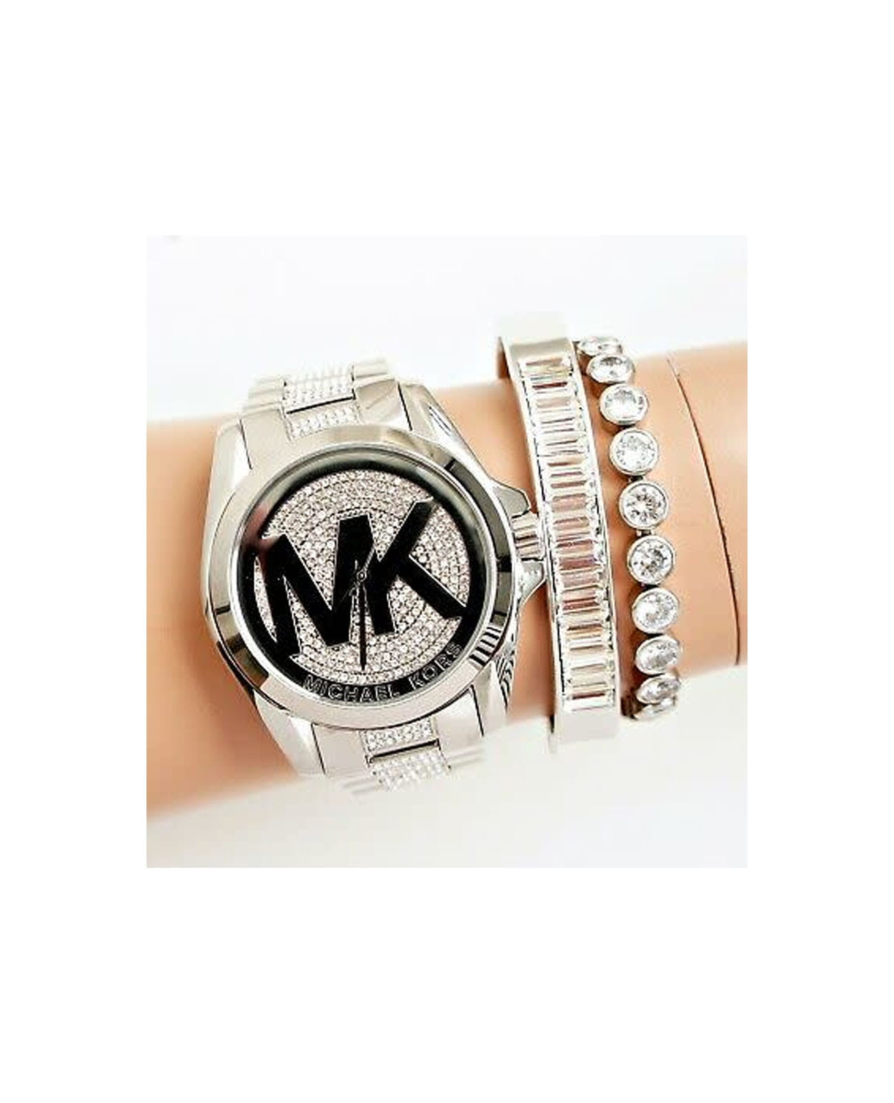 Женские американские часы с минеральным стекломМинеральное стеклоМинеральное стекло представляет собой искусственно выращенный минерал кварца. Такое стекло отличается особой устойчивостью к повреждениям и царапинам. Уступает по некоторым качествам сапфировому стеклу. Michael Kors Bradshaw MK6486, кварцевый механизм с высокой точностью. Корпус часов изготовлен из стали. Циферблат украшен кристаллами. Класс водозащиты: 100 метров, позволит плавать, нырять и заниматься другими водными видами спорта. Стальной браслет на раскладной застёжкеРаскладная застёжкаТакой тип застёжки используется только на браслетах из металла. Она никогда не раскрывается полностью, происходит разделение на 2 и более частей. Раскладывающая застёжка снизит вероятность потери часов к минимуму..