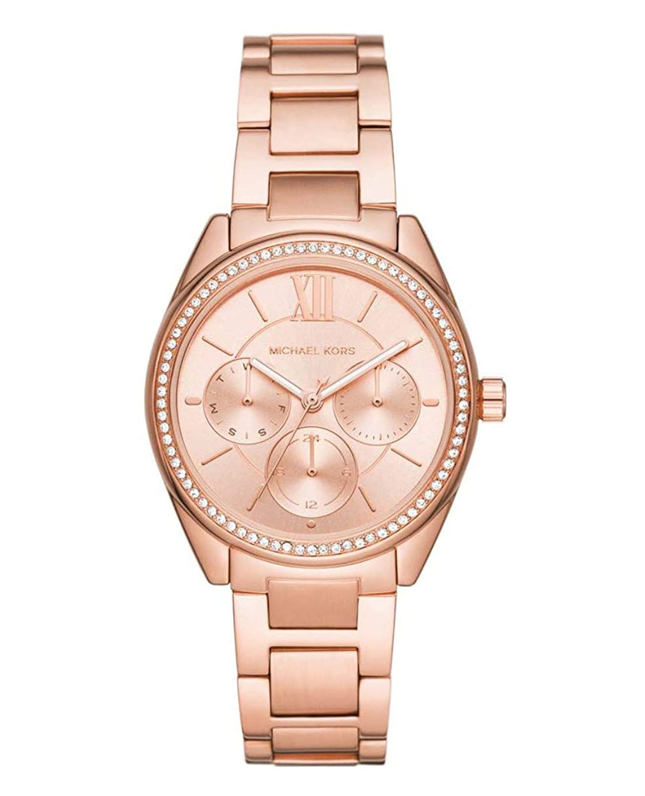 Женские американские часы с минеральным стекломМинеральное стеклоМинеральное стекло представляет собой искусственно выращенный минерал кварца. Такое стекло отличается особой устойчивостью к повреждениям и царапинам. Уступает по некоторым качествам сапфировому стеклу. Michael Kors Lexington MK7091, кварцевый механизм с высокой точностью. Корпус часов изготовлен из нержавеющей стали с PVD-покрытиемPVDУльтратонкое покрытие наносится в технике вакуумного напыления, сочетает в себе нитрид титана особой прочности со слоем золота или оксида хрома. Несёт в себе декоративную или защитную функцию.. Три дополнительных индикатора на циферблате. 12-ти и 24-х часовой формат. БезельБезельВнешний ободок, закрепляющий стекло. В спортивных часах так называется поворотное кольцо с делениями на циферблате, выполняет роль таймера – замеряет отрезки времени на шкале. Неподвижный безель – элемент декора. Однонаправленно вращающийся безель на дайверских часах позволяет фиксировать моменты погружения и выныривания на поверхность. украшен кристаллами. Класс водозащиты: 100 метров, позволит плавать, нырять и заниматься другими водными видами спорта. Стальной браслет из нержавеющей стали с PVD-покрытиемPVDУльтратонкое покрытие наносится в технике вакуумного напыления, сочетает в себе нитрид титана особой прочности со слоем золота или оксида хрома. Несёт в себе декоративную или защитную функцию. на раскладной застёжкеРаскладная застёжкаТакой тип застёжки используется только на браслетах из металла. Она никогда не раскрывается полностью, происходит разделение на 2 и более частей. Раскладывающая застёжка снизит вероятность потери часов к минимуму..