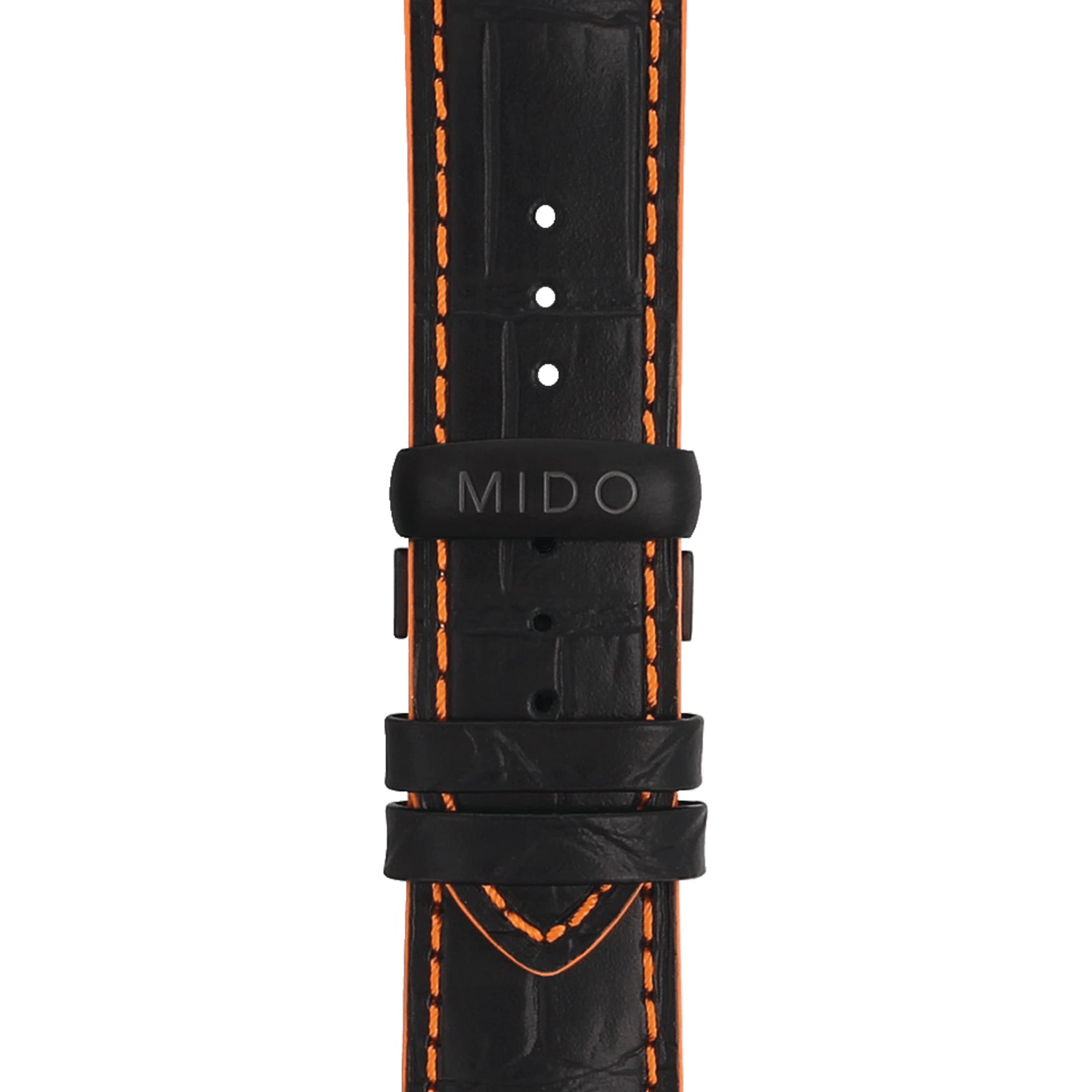 Мужские швейцарские механические часы Mido Multifort M005.430.36.051.80, механический механизм (автоматический калибр) с высокой точностью. Сапфировое стекло устойчивое к появлению царапин, обладающее высокой прозрачностью. Благодаря трем счетчикам, черному циферблату и оранжевым накладным меткам и стрелкам эти часы-хронограф Multifort Chronograph Special Edition выглядят чрезвычайно эффектно. Класс водозащиты: 100 метров, позволит плавать, нырять и заниматься другими водными видами спорта. Корпус часов изготовлен из стали, с PVD покрытием черного цвета. Часы предлагаются в комплекте с двумя сменными ремешками черного и оранжевого цвета.