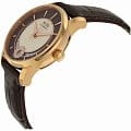 Ремешок из коричневой кожи оснащён раскладной застёжкойРаскладная застёжкаТакой тип застёжки используется только на браслетах из металла. Она никогда не раскрывается полностью, происходит разделение на 2 и более частей. Раскладывающая застёжка снизит вероятность потери часов к минимуму., обеспечивающей комфортное ношение и надёжную фиксацию на запястье. Водонепроницаемость 50 метров (5 ATM) делает эту модель идеальным выбором для повседневного использования, защищая от случайных брызг и дождя.