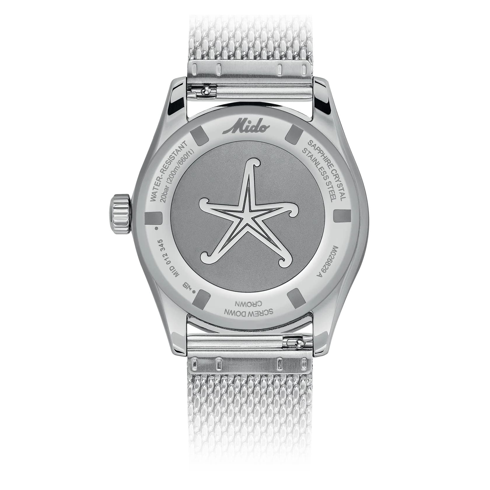 Модель оснащена автоматическим механизмом MIDO Caliber 80, обеспечивающим запас хода до 80 часов. Функционал включает индикацию часов, минут, секунд, даты в положении «3 часа» и второго часового пояса GMTGMTОтображение времени второго часового пояса.Такая функция особенно актуальна для путешественников и бизнесменов,которые общаются с людьми из разных стран,теперь вы всегда будете знать,какой час у вашего партнёра или близкого человека..