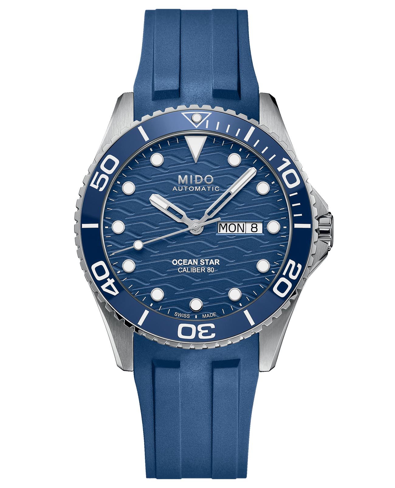 Часы MIDO Ocean Star 200C (артикул M042.430.17.041.00) сочетают элегантный дизайн и высокую функциональность, подходя как для повседневного ношения, так и для водных приключений. Корпус диаметром 42,5 мм выполнен из нержавеющей стали с водозащитой до 20 бар (200 метров). Однонаправленная вращающаяся безель, завинчивающиеся заводная головка и задняя крышка подчёркивают практичность. Синий циферблат с волнообразным узором оснащён накладными часовыми метками и стрелками с покрытием Super-LumiNova®Люминесцентное покрытиеПозволяет считывать показания времени в темноте. Производители наносят на стрелки, часовые индексы, безель или поверхность циферблата светонакопительный состав, дающий холодное свечение.. Окошки даты и дня недели расположены в положении «3 часа». Циферблат защищён сапфировым стекломСапфировое стеклоПрочный и надёжный материал из кристалла сапфира синтетического происхождения, характеризующийся особой твёрдостью и устойчивостью к царапинам и повреждениям. с двусторонним антибликовым покрытием.