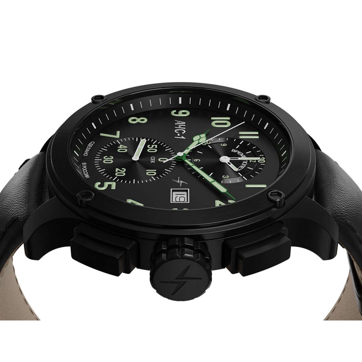 Мужские кварцевые часы — это стильный и функциональный аксессуар с хронографом. Корпус диаметром 44 мм выполнен из нержавеющей стали 316L с IP-покрытиемIP-покрытиеМетод ионного напыления. Демонстрирует повышенную устойчивость к истиранию, окислению и химическим веществам. Под воздействием высокого давления и температуры около 1500°C молекулы металла надёжно соединяются с частицами корпуса часов., включая безельБезельВнешний ободок, закрепляющий стекло. В спортивных часах так называется поворотное кольцо с делениями на циферблате, выполняет роль таймера – замеряет отрезки времени на шкале. Неподвижный безель – элемент декора. Однонаправленно вращающийся безель на дайверских часах позволяет фиксировать моменты погружения и выныривания на поверхность., кнопки и заводную головку. Циферблат чёрного цвета оформлен индексами и стрелками. Стрелки и метки с люминесцентным покрытиемЛюминесцентное покрытиеПозволяет считывать показания времени в темноте. Производители наносят на стрелки, часовые индексы, безель или поверхность циферблата светонакопительный состав, дающий холодное свечение. Super-LumiNova, обеспечивающим хорошую читаемость в темноте. Циферблат защищён сапфировым стекломСапфировое стеклоПрочный и надёжный материал из кристалла сапфира синтетического происхождения, характеризующийся особой твёрдостью и устойчивостью к царапинам и повреждениям.. Механизм — швейцарский кварцевый калибр Ronda 3520.D с функциями хронографаХронографФункция позволяет измерять отрезки времени с особой точностью: часы, минуты, секунды. Верным признаком хронографа является наличие на циферблате 3 дополнительных окошек-счётчиков. и секундомераСекундомерСекундоме́р — прибор, способный измерять интервалы времени с точностью до долей секунды.. Часы оснащены кожаным ремешком чёрного цвета с классической пряжкой. Водонепроницаемость 100 м позволяет использовать часы для плавания и повседневного ношения. Идеальный выбор для тех, кто ценит точность, качество и выразительный дизайн.