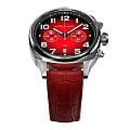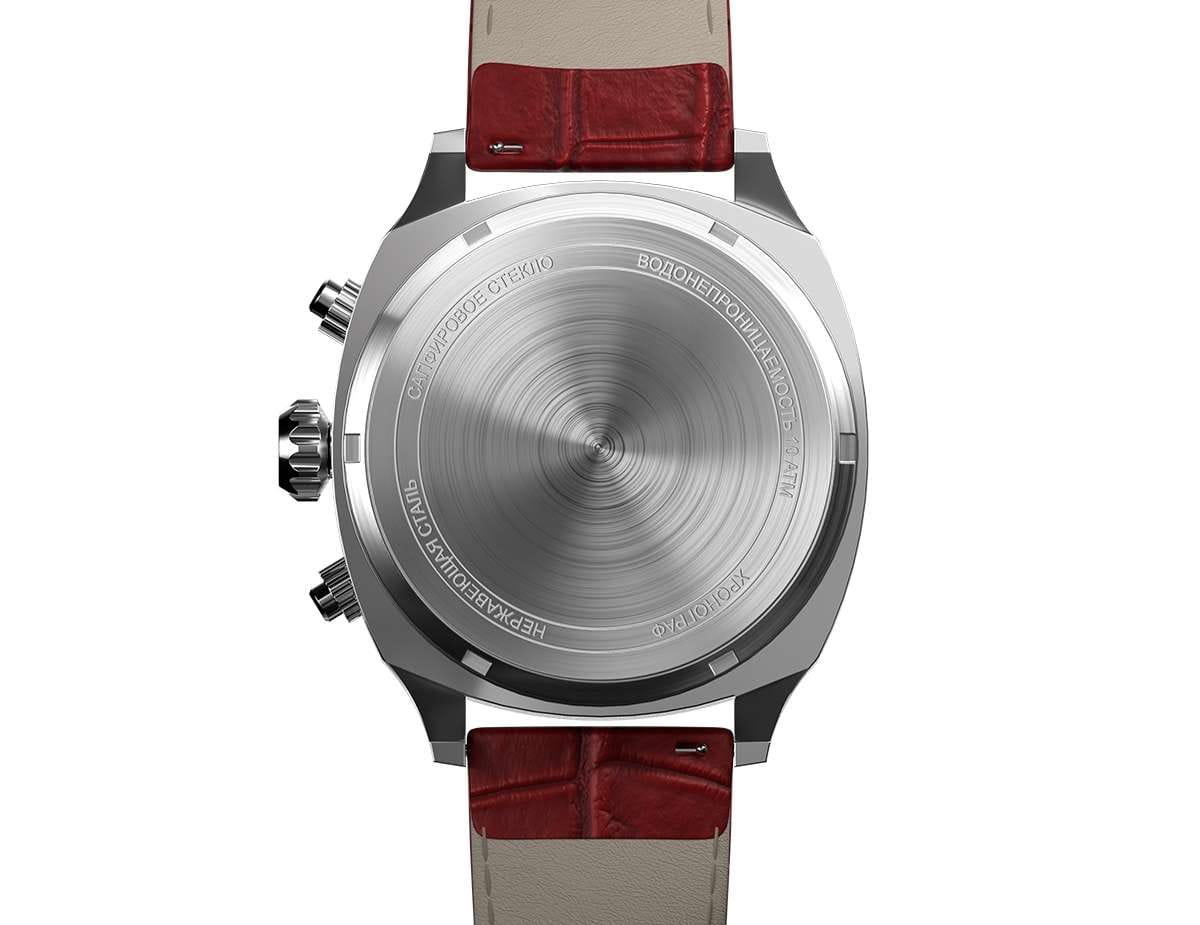 Мужские кварцевые часы — это стильный и функциональный аксессуар. Корпус диаметром 42 мм выполнен из нержавеющей стали 316L с зеркальной полировкой. Циферблат красного цвета оформлен индексами и стрелками с люминесцентным покрытиемЛюминесцентное покрытиеПозволяет считывать показания времени в темноте. Производители наносят на стрелки, часовые индексы, безель или поверхность циферблата светонакопительный состав, дающий холодное свечение.. Окошко даты расположено в положении 6 часов. Циферблат защищён сапфировым стекломСапфировое стеклоПрочный и надёжный материал из кристалла сапфира синтетического происхождения, характеризующийся особой твёрдостью и устойчивостью к царапинам и повреждениям.. Механизм — японский кварцевый калибр Miyota 6S21 с функцией хронографаХронографФункция позволяет измерять отрезки времени с особой точностью: часы, минуты, секунды. Верным признаком хронографа является наличие на циферблате 3 дополнительных окошек-счётчиков.. Часы оснащены кожаным ремешком красного цвета с текстурой под аллигатора и стандартной застёжкой. Водонепроницаемость 100 м позволяет использовать часы для плавания и повседневного ношения. Идеальный выбор для тех, кто ценит точность, качество и выразительный дизайн.