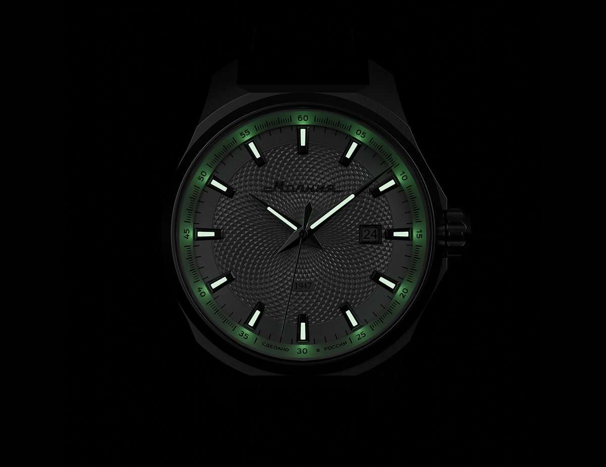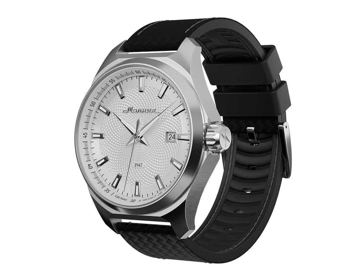 Мужские механические часы с автоподзаводом — это надёжный аксессуар от легендарного бренда «МОЛНИЯ», созданный на Челябинском часовом заводе. Корпус диаметром 42 мм выполнен из нержавеющей стали 316L с зеркальной полировкой. БезельБезельВнешний ободок, закрепляющий стекло. В спортивных часах так называется поворотное кольцо с делениями на циферблате, выполняет роль таймера – замеряет отрезки времени на шкале. Неподвижный безель – элемент декора. Однонаправленно вращающийся безель на дайверских часах позволяет фиксировать моменты погружения и выныривания на поверхность. также выполнен из стали с зеркальной отделкой. Циферблат белого цвета оформлен индексами и стрелками. Окошко даты расположено в положении 3 часов. Стрелки и метки с люминесцентным покрытиемЛюминесцентное покрытиеПозволяет считывать показания времени в темноте. Производители наносят на стрелки, часовые индексы, безель или поверхность циферблата светонакопительный состав, дающий холодное свечение. Super-LumiNova, обеспечивающим хорошую читаемость в темноте. Циферблат защищён сапфировым стекломСапфировое стеклоПрочный и надёжный материал из кристалла сапфира синтетического происхождения, характеризующийся особой твёрдостью и устойчивостью к царапинам и повреждениям. с антибликовым покрытиемАнтибликовое покрытиеСлой оксида металла в 0,13-0,3 микрон, благодаря которому стекло часов не бликует и не отражает свет. Антибликовое покрытие уменьшает отражение света в 10 раз, обеспечивая отличную читаемость показателей циферблата.. Механизм — японский автоматический калибр Miyota 8215 с функцией и запасом хода до 42 часов. Прозрачная задняя крышка позволяет наблюдать за работой механизма с кастомным ротором. Часы оснащены кожаным ремешком чёрного цвета с подкладкой из фтористого каучука и классической пряжкой, а также системой быстрой замены. Водонепроницаемость 100 м позволяет использовать часы для плавания и повседневного ношения. Идеальный выбор для тех, кто ценит качество, точность и стиль.
