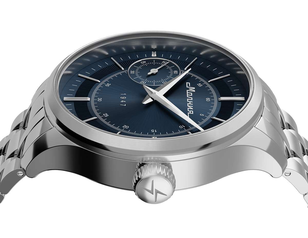 Мужские механические часы с ручным подзаводом — это аксессуар от легендарного бренда «МОЛНИЯ», созданный на Челябинском часовом заводе. Корпус диаметром 41 мм выполнен из нержавеющей стали 316L с зеркальной полировкой. БезельБезельВнешний ободок, закрепляющий стекло. В спортивных часах так называется поворотное кольцо с делениями на циферблате, выполняет роль таймера – замеряет отрезки времени на шкале. Неподвижный безель – элемент декора. Однонаправленно вращающийся безель на дайверских часах позволяет фиксировать моменты погружения и выныривания на поверхность. также выполнен из стали с зеркальной отделкой. Циферблат синего цвета оформлен индексами и стрелками. Малая секундная стрелка вынесена на позицию 9 часов. Циферблат защищён сапфировым стекломСапфировое стеклоПрочный и надёжный материал из кристалла сапфира синтетического происхождения, характеризующийся особой твёрдостью и устойчивостью к царапинам и повреждениям. толщиной 2 мм. Механизм — мануфактурный калибр 3603, собранный вручную, с запасом хода до 40 часов. Прозрачная задняя крышка позволяет наблюдать за работой механизма. Часы оснащены стальным браслетом с раскладной застёжкойРаскладная застёжкаТакой тип застёжки используется только на браслетах из металла. Она никогда не раскрывается полностью, происходит разделение на 2 и более частей. Раскладывающая застёжка снизит вероятность потери часов к минимуму. с кнопочным открытием и системой быстрой замены. Водонепроницаемость 50 м позволяет использовать часы в повседневных условиях. Идеальный выбор для тех, кто ценит российское качество и традиции.