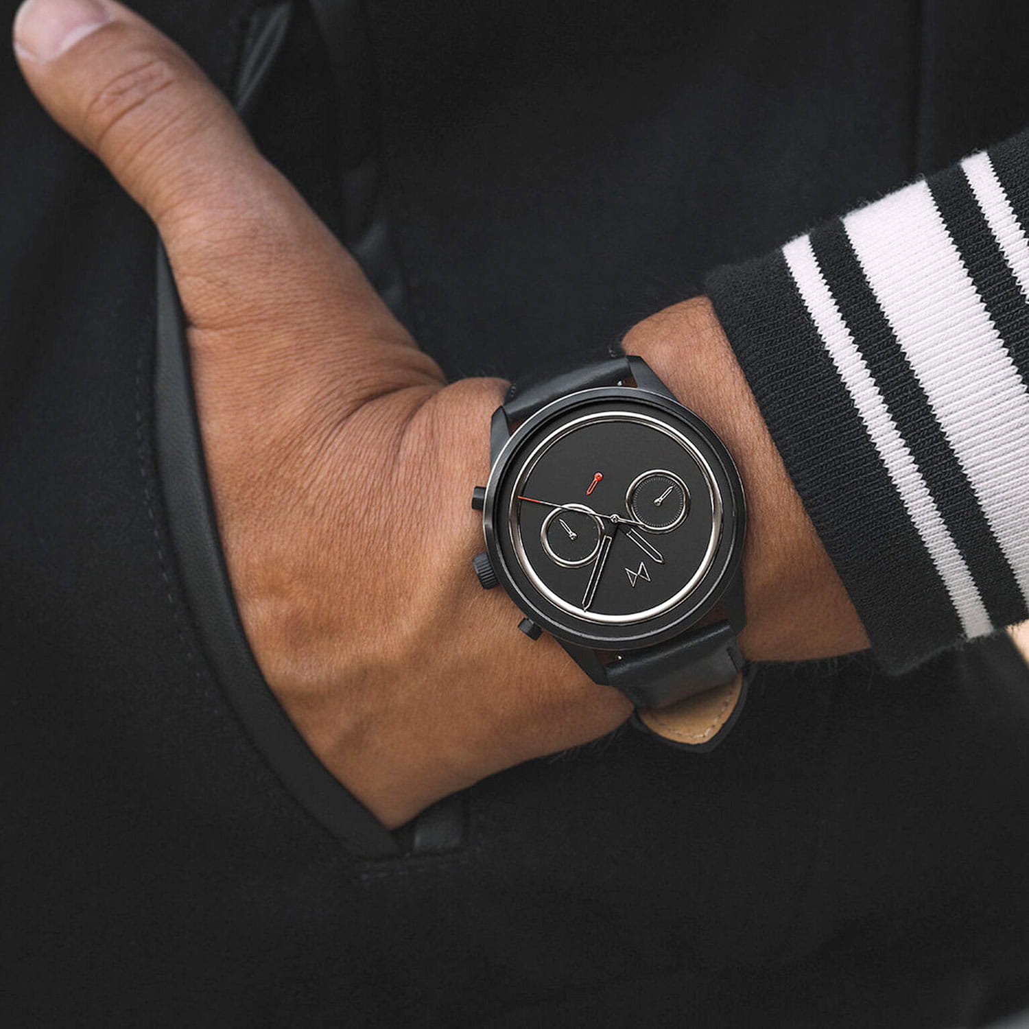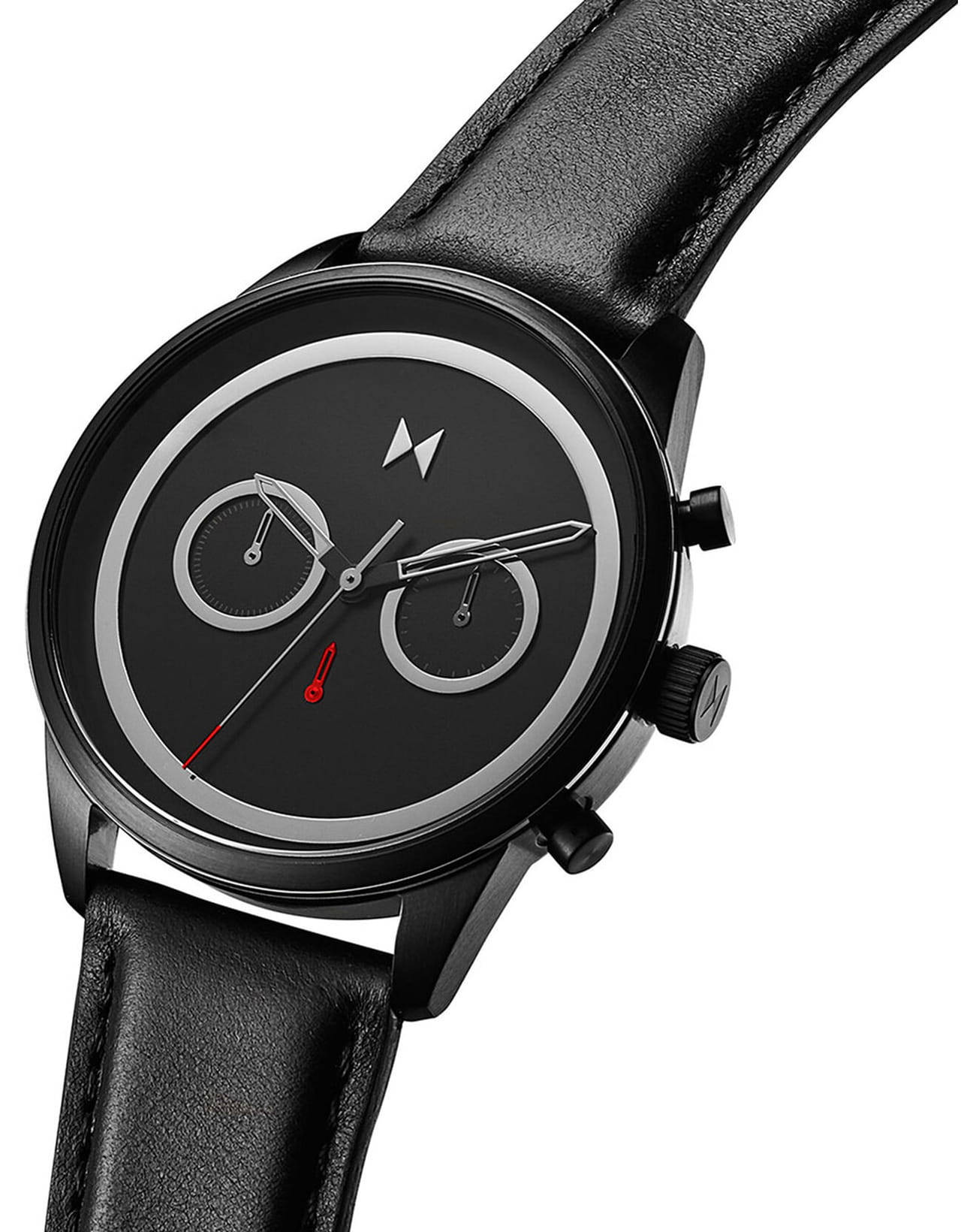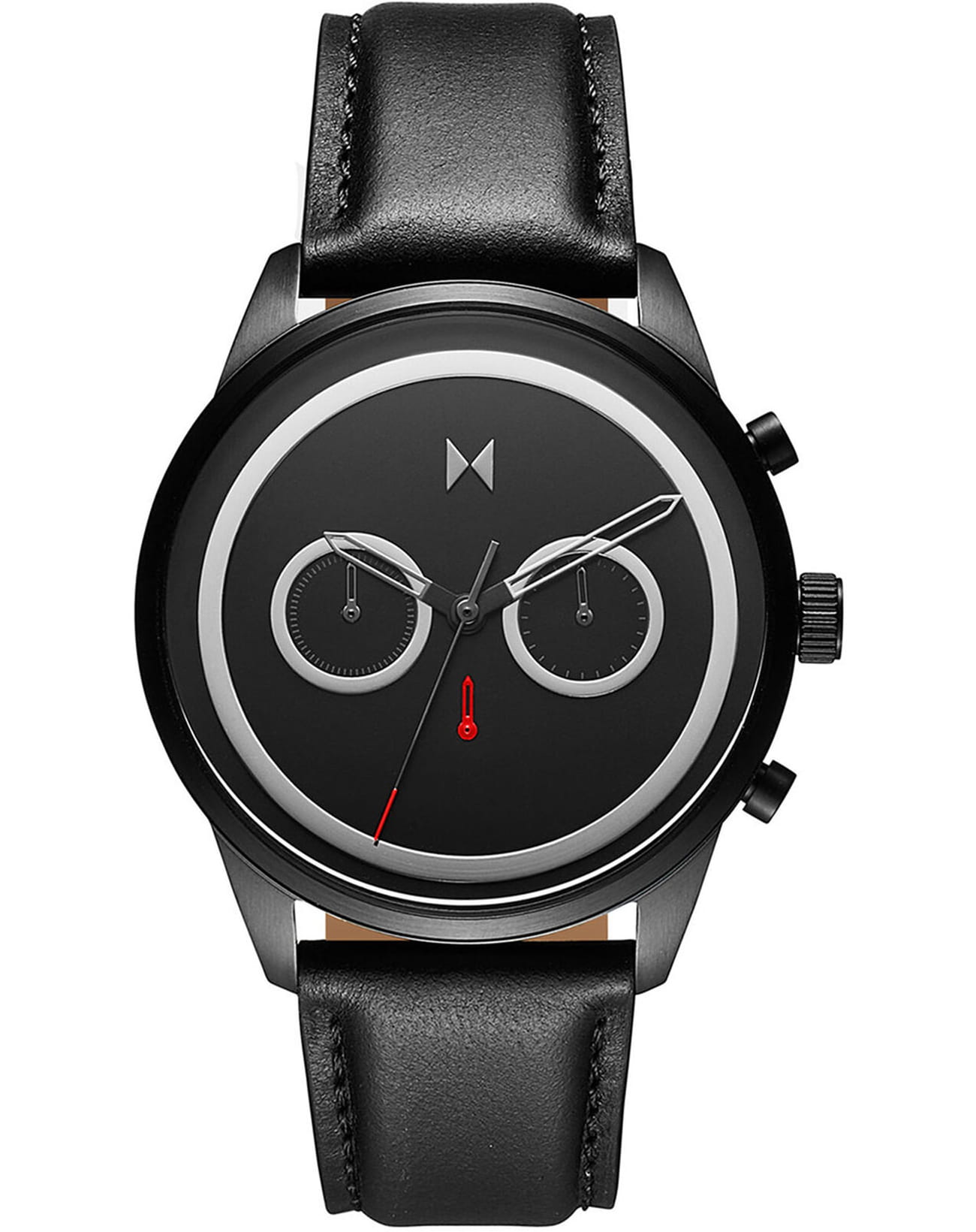 Мужские кварцевые часы-хронографХронографФункция позволяет измерять отрезки времени с особой точностью: часы, минуты, секунды. Верным признаком хронографа является наличие на циферблате 3 дополнительных окошек-счётчиков. с секундомеромСекундомерСекундоме́р — прибор, способный измерять интервалы времени с точностью до долей секунды. MVMT 28000125-D – лаконичная красота и изысканная элегантность. Оригинальная модель с классическим оформлением станет превосходным завершением образа, наделив его индивидуальным характером. Корпус выполнен из нержавеющей стали с IP-покрытиемIP-покрытиеМетод ионного напыления. Демонстрирует повышенную устойчивость к истиранию, окислению и химическим веществам. Под воздействием высокого давления и температуры около 1500°C молекулы металла надёжно соединяются с частицами корпуса часов. черного цвета, диаметром 43 мм и толщиной 10,1 мм, что обеспечивает долговечность и надежность. Закаленное минеральное стеклоМинеральное стеклоМинеральное стекло представляет собой искусственно выращенный минерал кварца. Такое стекло отличается особой устойчивостью к повреждениям и царапинам. Уступает по некоторым качествам сапфировому стеклу. защищает циферблат от царапин. Кожаный ремешок на стандартной застёжке обеспечивает комфортное ношение. 12-ти и 24-х часовой формат времени. Водозащита 50 метров позволит защитить корпус от случайных брызг или капель дождя. Рифленая заводная головка с защитой. Это аксессуар для мужчины, который ценит классический стиль и функциональность.
